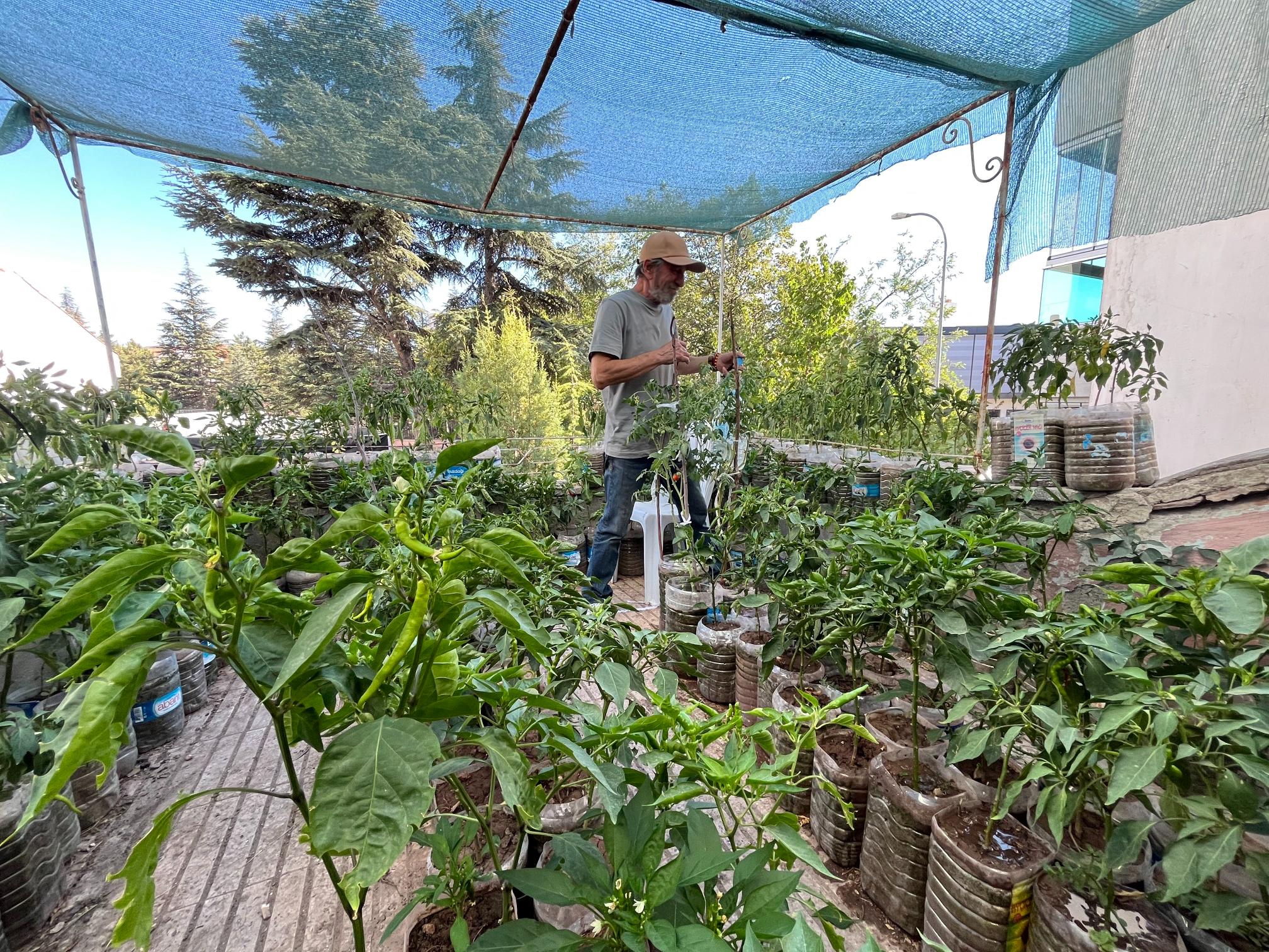 Yaz aylarında işlerin azalmasıyla boş zamanını değerlendirmek isteyen Pektaş'ın başlattığı bu hobi, zamanla ailesinin günlük sebze ihtiyacını karşılayan bir tutkuya dönüştü.