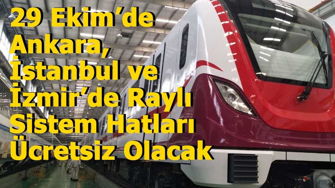 Bakan Uraloğlu, 24 Ekim 2025 tarihli Resmî Gazete’de yayımlanan Cumhurbaşkanı Kararı doğrultusunda, Cumhuriyet Bayramı’nda başkent Ankara’daki BaşkentRay, İzmir’deki İZBAN, İstanbul’daki Marmaray, Sirkeci-Kazlıçeşme Raylı Sistem Hattı ve Gayrettepe-İstanbul Havalimanı-Arnavutköy Metro Hattı’nın tüm vatandaşlar için ücretsiz olacağını belirtti.