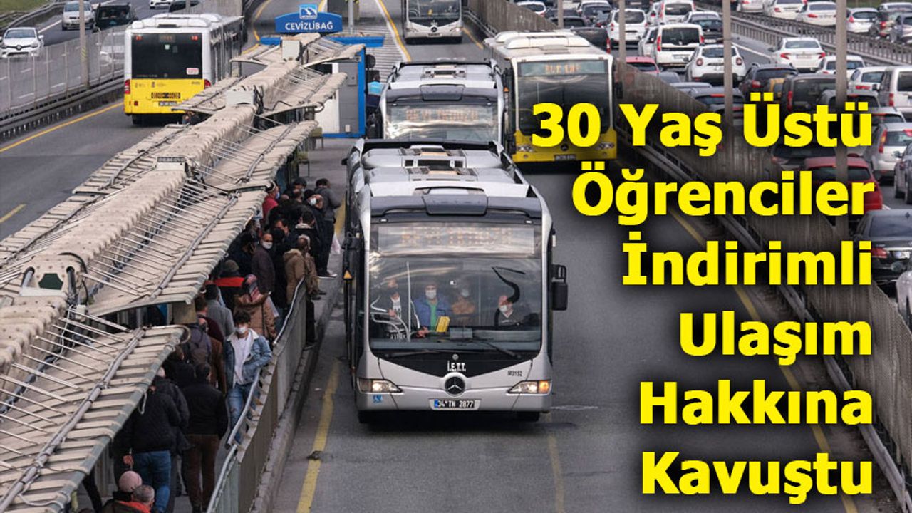 Böylece yüksek lisans, doktora ya da ikinci üniversite eğitimi alan 30 yaş üzeri öğrenciler de yeniden indirimli ulaşım hakkını kullanabilecek.