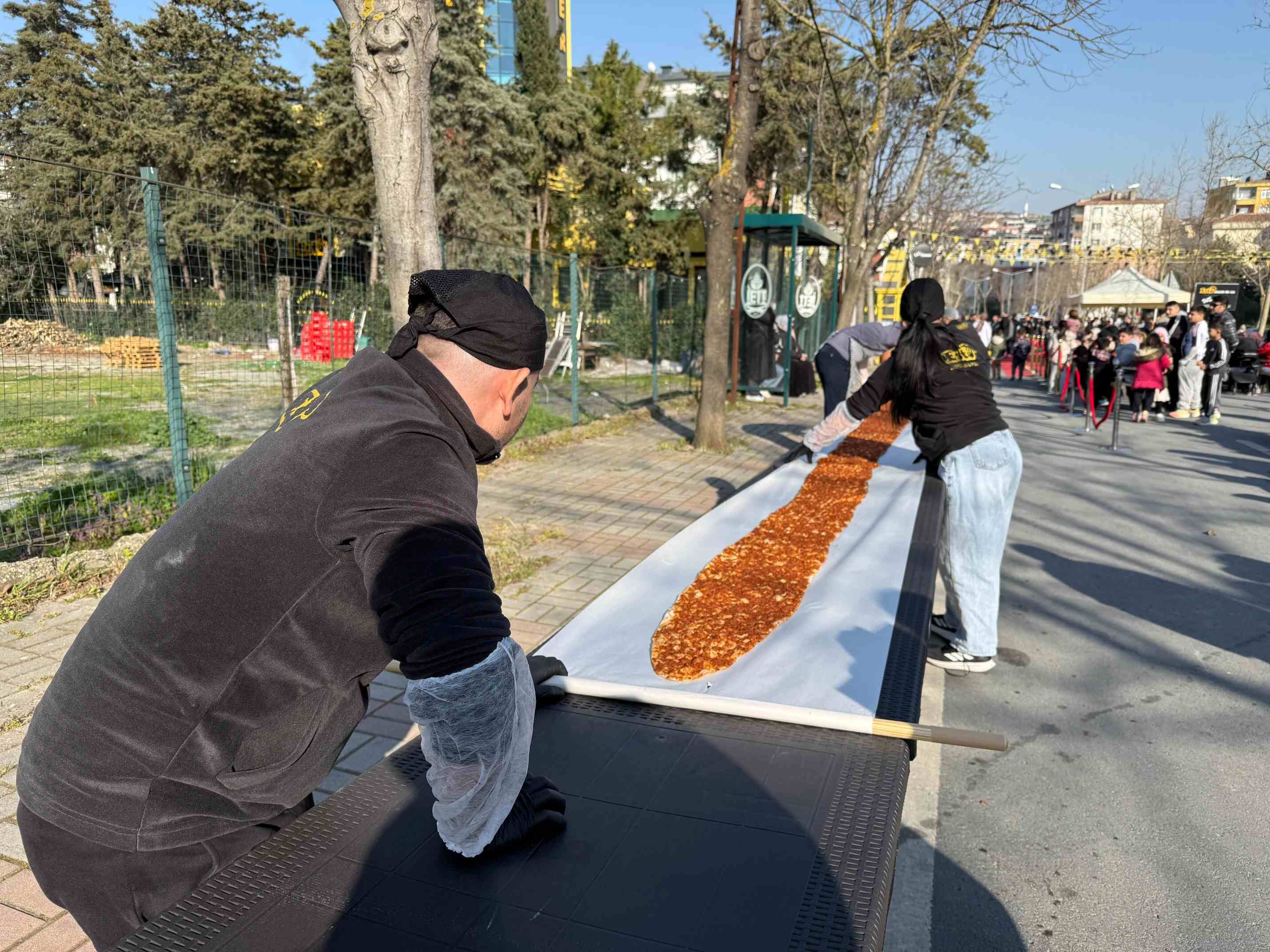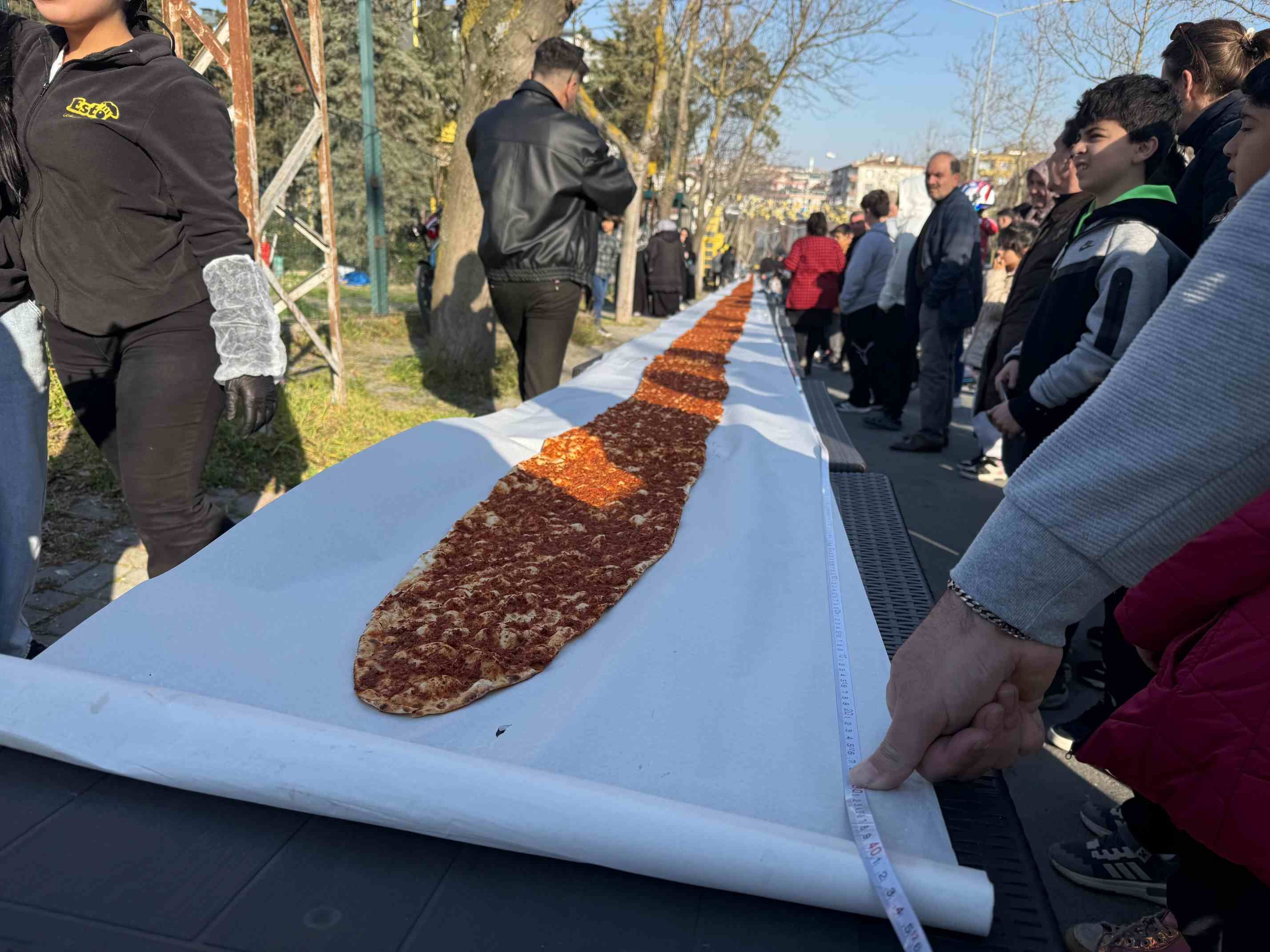 Özenle hazırlanan dev lahmacun, hem uzunluğu hem de lezzetiyle görenleri hayrete düşürdü. Günler süren hazırlık sürecinde özel olarak hazırlanan hamur ve iç harç kullanılırken, lahmacunun pişirilmesi de büyük bir titizlikle gerçekleştirildi. Rekor denemesi sırasında vatandaşlar da etkinliğe yoğun ilgi gösterdi. Ortaya çıkan 63 metrelik lahmacun, rekor tescilinin ardından dilimlenerek katılımcılara ikram edildi.