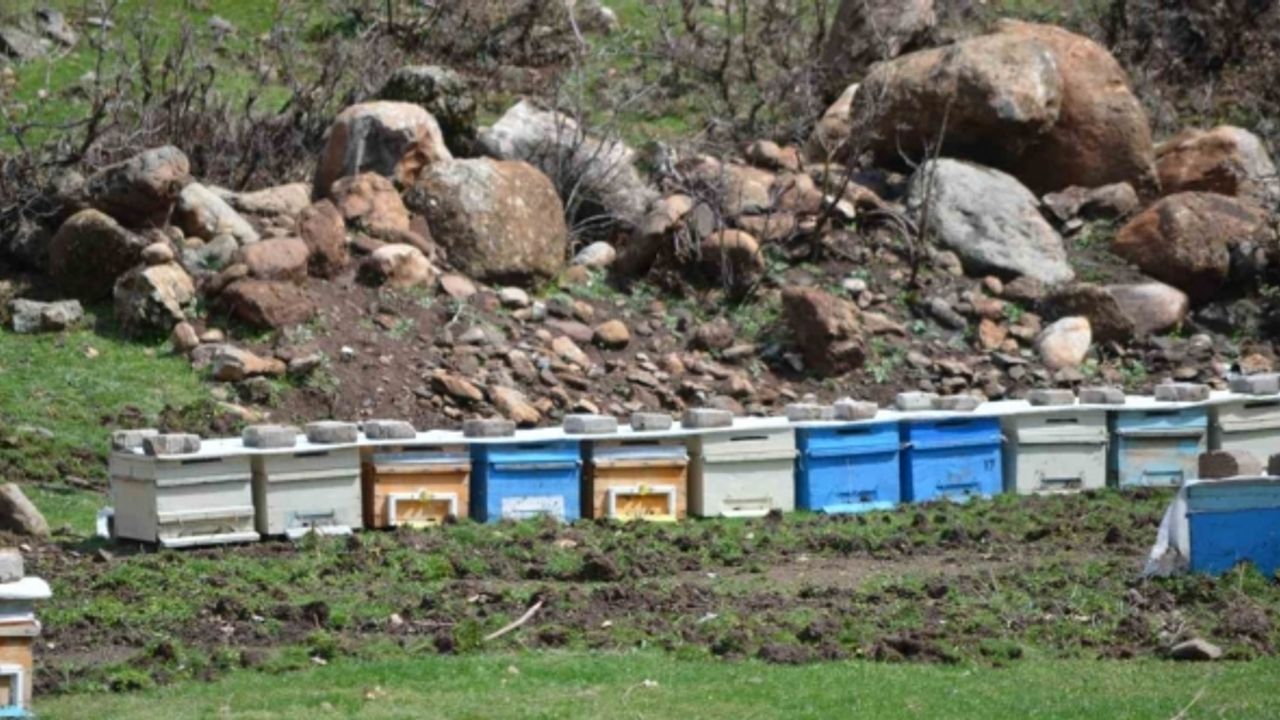 Şırnak’ın Beytüşşebap ilçesinde aç kalan domuz sürüsü bal arılarının bulunduğu bölgeye dadandı.