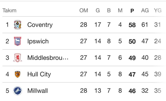 Bu sonuçla puanını 47’ye yükselten Hull City, ligde dördüncü sıraya tırmandı. Sarı-siyahlılar, ikinci sırada bulunan Ipswich Town ile arasındaki puan farkını da 3’e indirerek zirve yarışında önemli bir avantaj yakaladı. Preston ise 43 puanda kaldı.