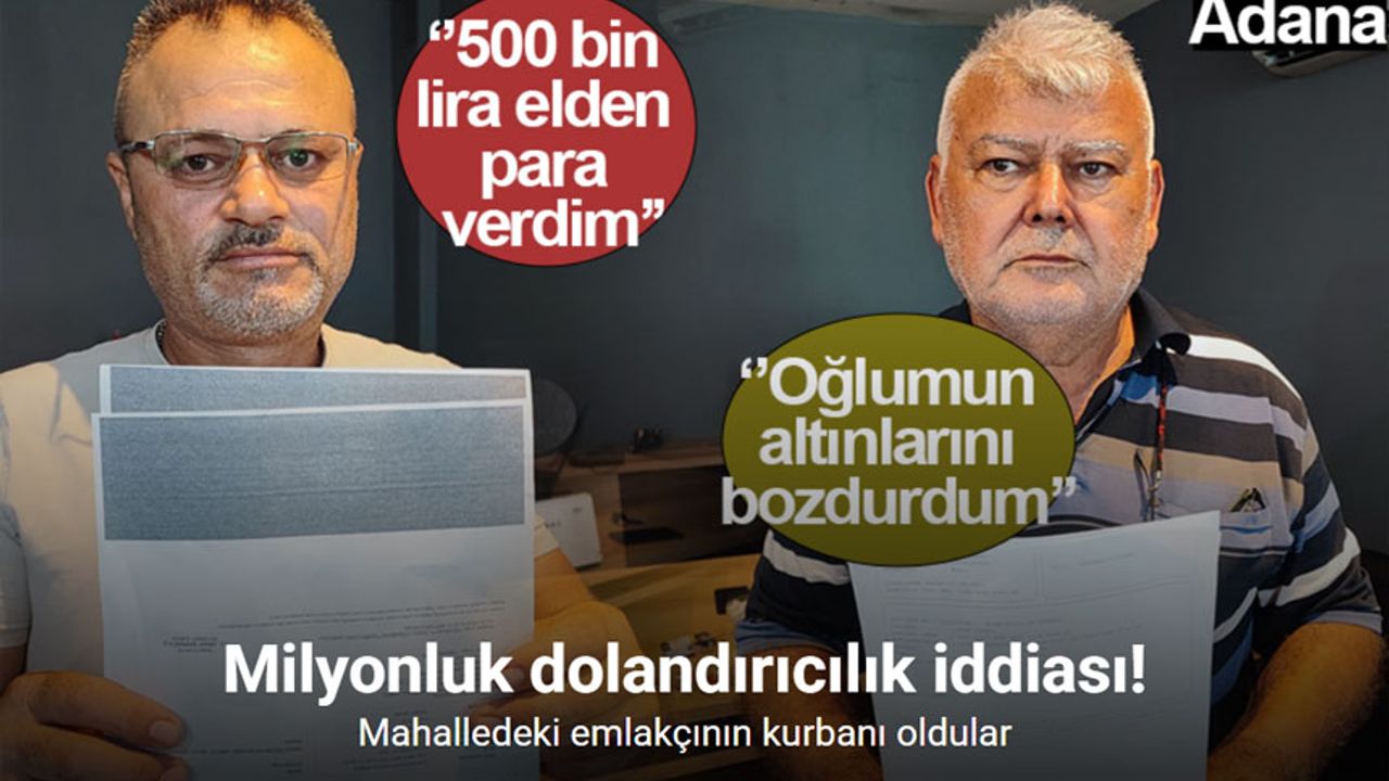 İddiaya göre, Mustafa Gül (45) ailesine, Ayhan Yalçın (66) ise yeni evlenen oğluna ev almak için mahalledeki emlakçı U.Y. ile anlaştı. Ancak 2 şahısta ev sahibi olmayı beklerken dolandırıldıklarını öğrendiklerini öne sürerek yaşananları anlattı. Mağdurlardan Mustafa Gül, "Biraderin aracılığıyla bir ev alalım dedik. Mahalledeki emlakçı U.Y. ile anlaştık. Bize gitti, evi gösterdi. Normal bir ev, birinci kat. Gittik, bu evde de ‘tamam’ dedi. Biz de anlaştık. Bana dedi ki, ‘1 milyon 100 bin lira para lazım.’ Biz de güvendik, verdik ve mağdur olduk. Eşimin hesabından 250 bin lira para yatırdım. Daha sonrada 500 bin lira elden para verdim. Paranın devamını da verebilmek için emlakçı ile birlikte bankadan kredi çekmek için başvuru yapmaya gittik. Ancak kredi bir türlü çıkmadı. Kredi sonucunu öğrenmeye gittiğimde bankacı kredi başvurusu olmadığını söyledi. Tam 750 bin lira dolandırıldık. İlk defa ev sahibi olacaktım. Ama dolandırıldım mağdur oldum" dedi. Gül, dolandırdığı için eşiyle de kavgalı olduğunu, eşinin kendisine boşanma davası açtığını evde huzuru kalmadığını söyledi.