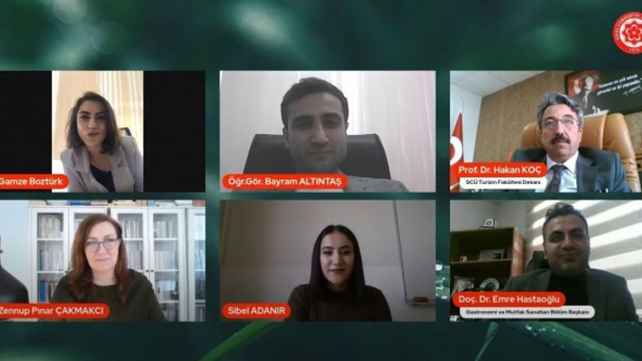 Webinar sistemi üzerinden gerçekleşen konferansa, Turizm Fakültesi Dekanı Prof. Dr. Hakan Koç, Dekan Yardımcısı Doç. Dr. Emre Hastaoğlu, Gastronomi ve Mutfak Sanatları Bölümü Öğr. Gör. Bayram Altıntaş katıldı.