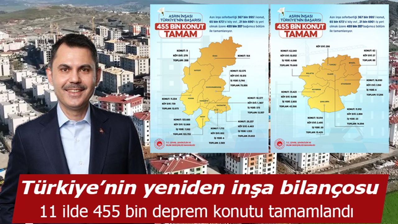 Sosyal medya hesabından açıklama yapan Bakan Kurum, yürütülen projeyi “Devletine inanan Türk milletinin başarısı” sözleriyle değerlendirdi. Cumhurbaşkanı Recep Tayyip Erdoğan’ın katılımıyla Hatay’da 455 bininci deprem konutunun anahtarı hak sahibine teslim edildi.