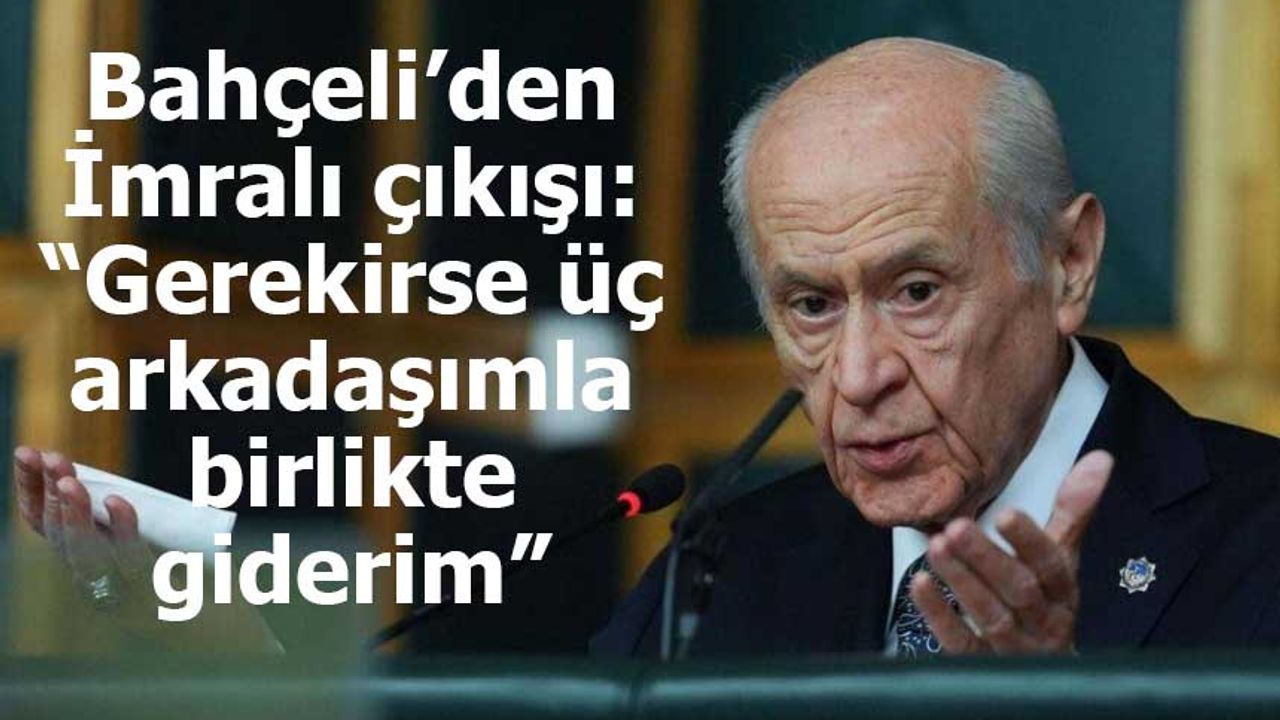 Bahçeli, Milli Dayanışma, Kardeşlik ve Demokrasi Komisyonu’nun çalışmaları kapsamında İmralı’ya gitme tartışmalarına değinerek, “Alırım yanıma üç arkadaşımı, kendi imkânlarımızla İmralı’ya gitmekten gocunmam” sözleriyle dikkatleri üzerine çekti.