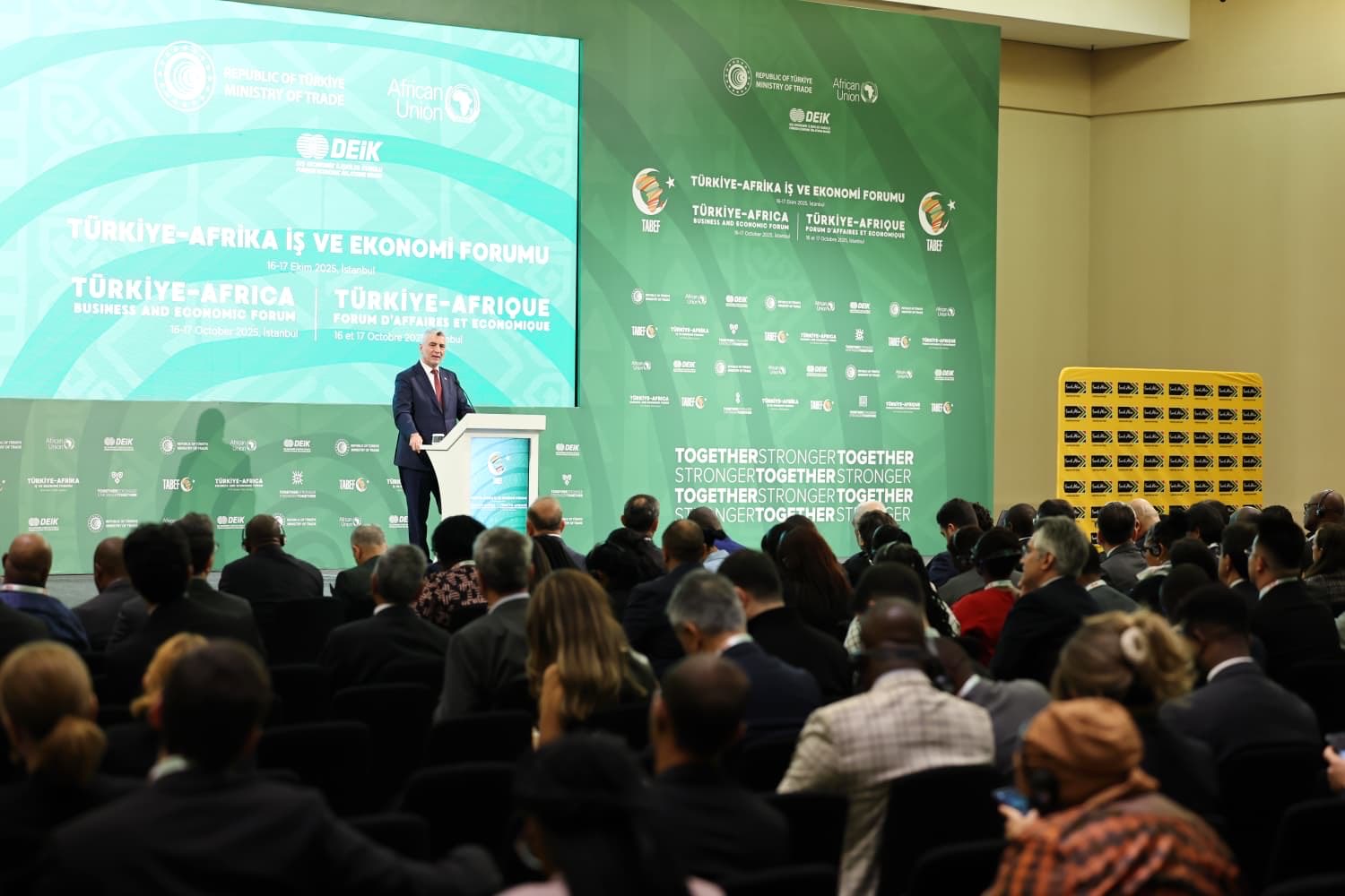 Törende bir konuşma yapan Ticaret Bakanı Ömer Bolat, Afrika ile ilişkileri her alanda geliştirmenin 2003 yılında bir hükümet ve devlet stratejisi olarak başlatıldığını belirterek "O günden bugüne geçen 22 yılda çok büyük gelişmeler ilerlemeler sağladık. Türkiye 2005 yılında Afrika Birliği'nde gözlemci, 2008 yılında stratejik ortak konumuna gelmişti. 2013'den bu yana da Afrika ile olan ilişkilerimiz Afrika ortaklık politikası çerçevesinde yürütülmektedir" diye konuştu.