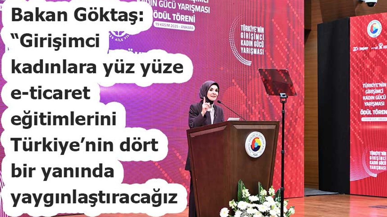Türkiye Odalar ve Borsalar Birliği’nde (TOBB) düzenlenen Türkiye'nin Girişimci Kadın Gücü Yarışması Ödül Töreni’nde konuşan Göktaş, Hepsiburada iş birliğiyle girişimci kadınlara yönelik yüz yüze e-ticaret eğitimlerinin ülke genelinde başlatılacağını açıkladı.