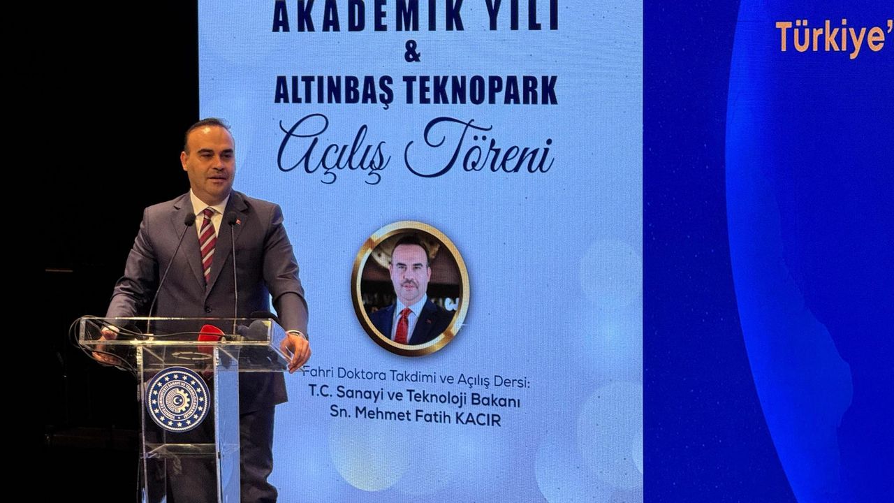 Sanayi ve Teknoloji Bakanı Mehmet Fatih Kacır, İstanbul’da Altınbaş Üniversitesi 2025-2026 Akademik Yılı Açılışı ve Altınbaş Teknopark Açılış Töreninde konuştu.