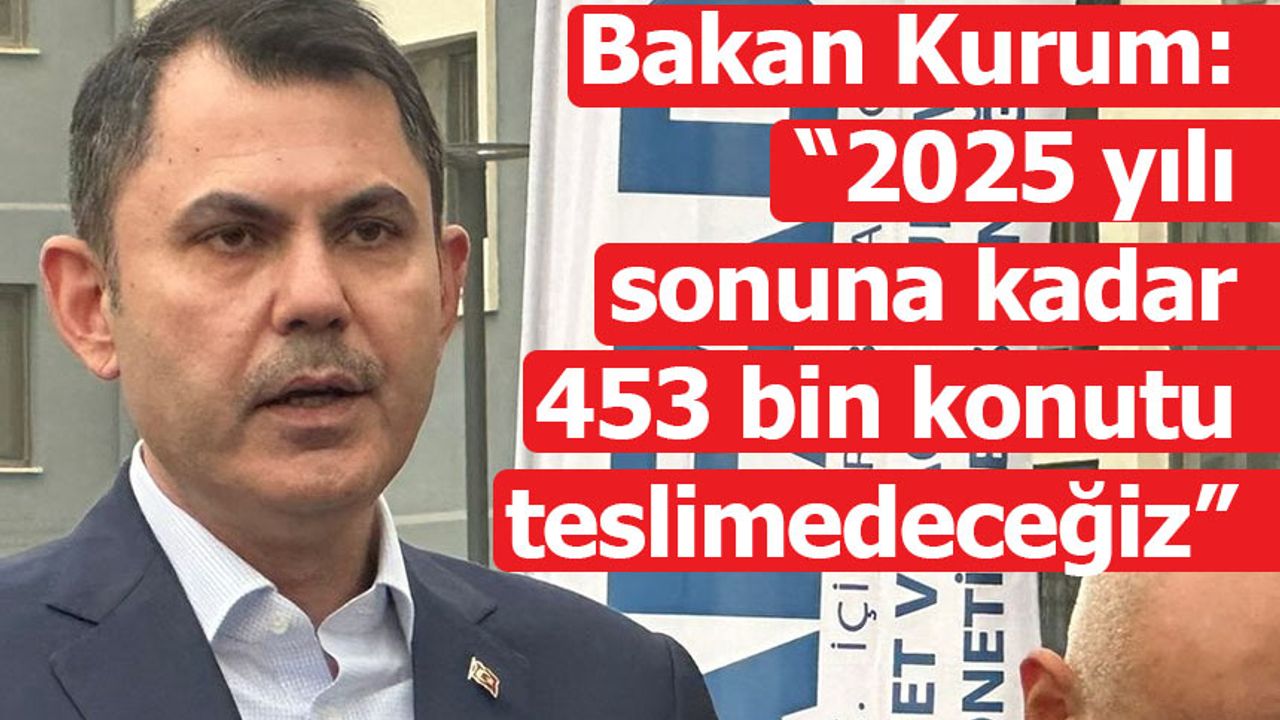 Türkiye genelindeki çalışmalara dikkat çeken Kurum, “2025 yılı sonuna kadar 453 bin konutu teslim edeceğiz.” diye konuştu.