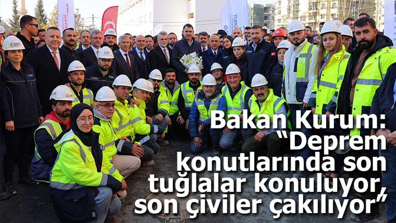 Kurum, “Deprem felaketinin ilk anından itibaren gösterdiğimiz kararlılık sayesinde bugün 11 ilimizin tamamında son aşamaya geldik. Son tuğlalara, son çivilere geldik” diye konuştu.