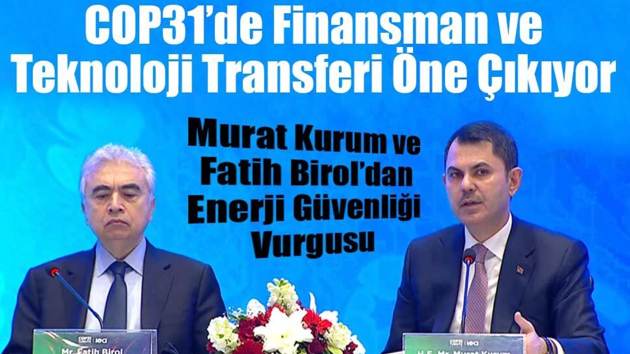 COP31 Başkanı ve Çevre, Şehircilik ve İklim Değişikliği Bakanı Murat Kurum, ilk kez Türkiye’nin ev sahipliğinde gerçekleştirilecek olan BM’nin iklim değişikliği ile mücadelede en önemli organizasyonu COP31 Zirvesi öncesi, Uluslararası Enerji Ajansı Başkanı Fatih Birol ile birlikte ortak basın toplantısı düzenleyerek Türkiye’nin COP31 eylem gündemine ilişkin enerji sektörüyle ilgili 5 önceliğini sıraladı: