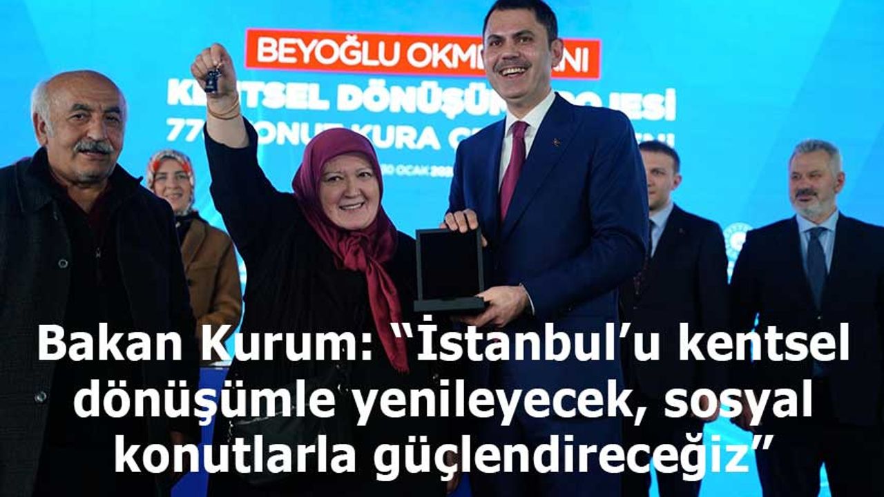 İstanbul’un her an deprem tehdidi altında olduğuna dikkat çeken Kurum, “İstanbul’umuzu kentsel dönüşümle yenileyecek, sosyal konutlarla güçlendireceğiz. Deprem korkusunun olmadığı, güvenli bir şehir için ne gerekiyorsa yapacağız” dedi.