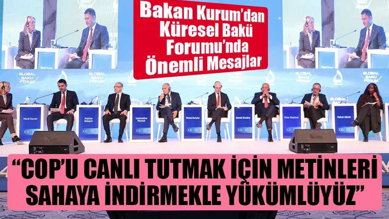 Çevre, Şehircilik ve İklim Değişikliği Bakanı Murat Kurum, Küresel Bakü Forumu kapsamında, düzenlenen “Azerbaycan’da Müzakerelerin Ötesinde: COP’u Hayatta Tutma Savaşı Paneli”nde katılımcılara hitap etti. Forumun kritik bir dönemde gerçekleştirildiğine dikkat çeken Bakan Kurum, ortaya konan bu iradenin iklim gündeminde sürekliliğin önemini ortaya koyduğunu belirtti.