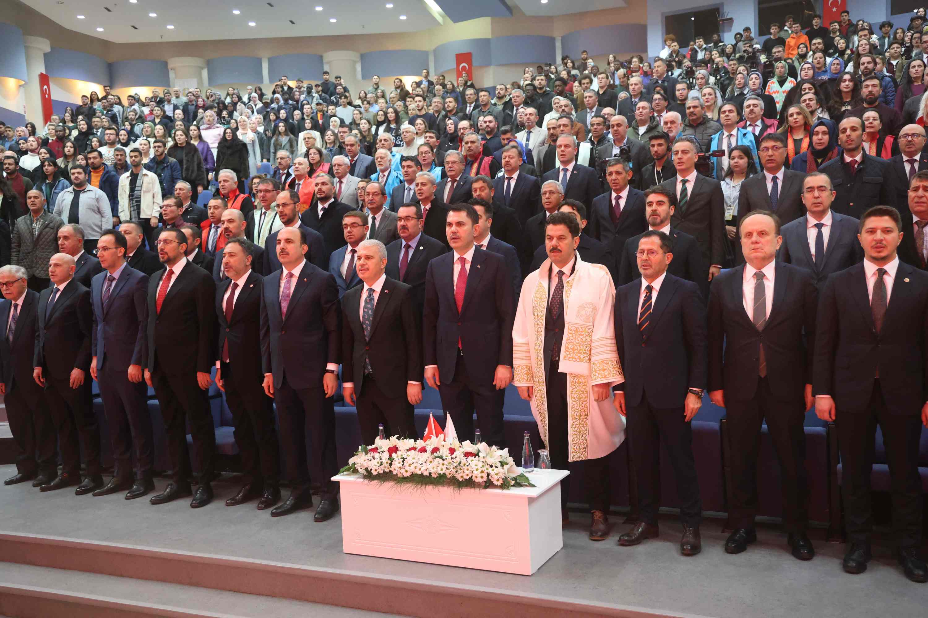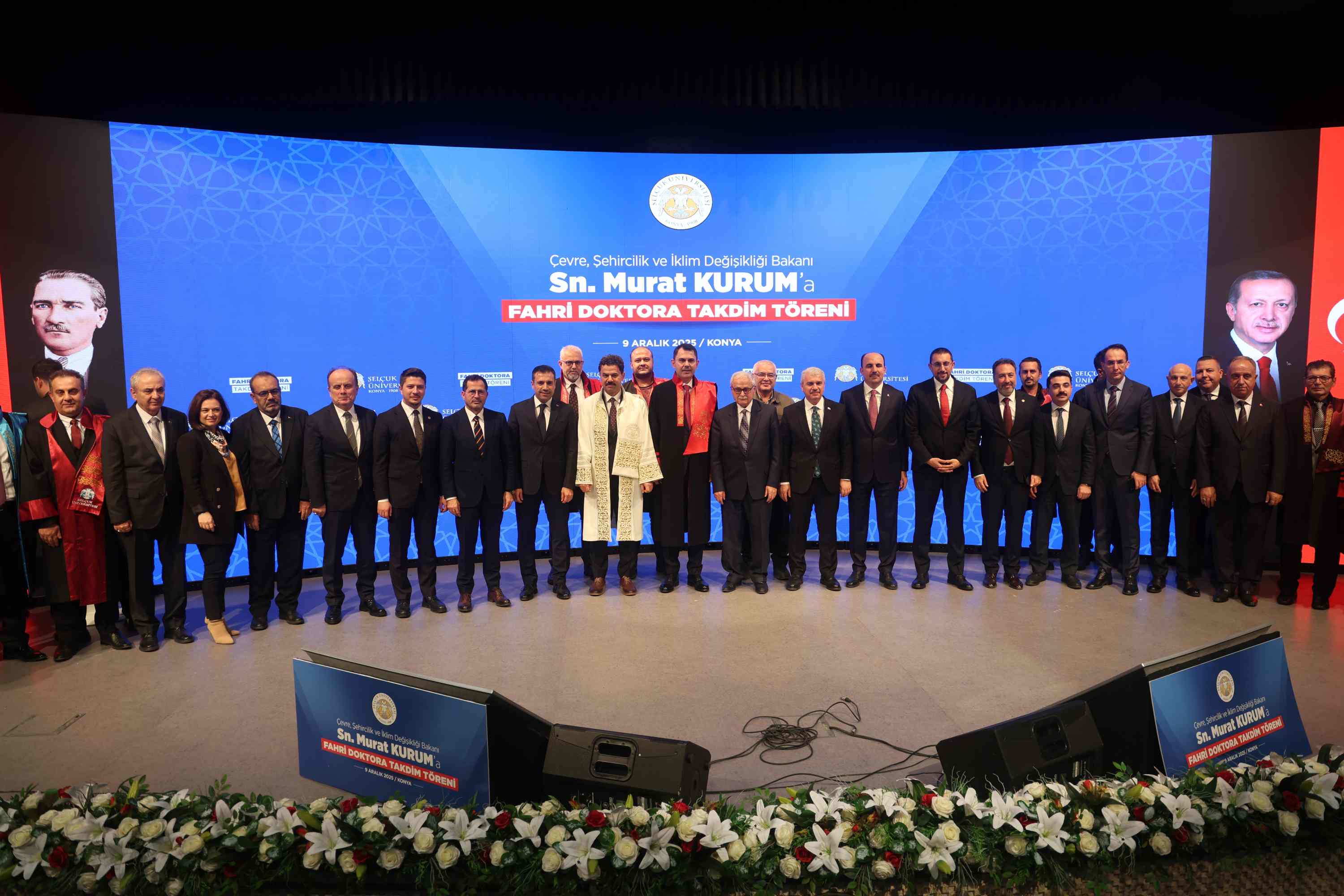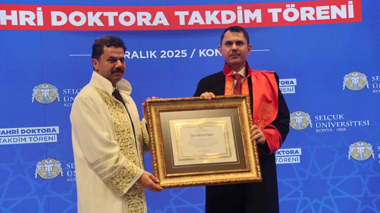 Konuşmaların ardından Selçuk Üniversitesi Rektörü Prof. Dr. Hüseyin Yılmaz tarafından Bakan Murat Kurum'a fahri doktora ünvanı verildi.