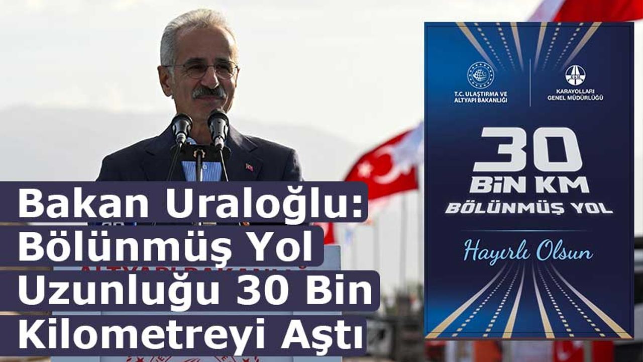 “30 Bininci Kilometre Bölünmüş Yol” lansmanı, Cumhurbaşkanı Recep Tayyip Erdoğan ile Ulaştırma ve Altyapı Bakanı Abdulkadir Uraloğlu’nun katılımıyla 30 Ocak Cuma günü İstanbul Haliç Kongre Merkezi’nde gerçekleştirilecek. Lansman öncesi yazılı bir açıklama yapan Bakan Uraloğlu, ulaştırma yatırımlarında gelinen noktaya dikkat çekti.