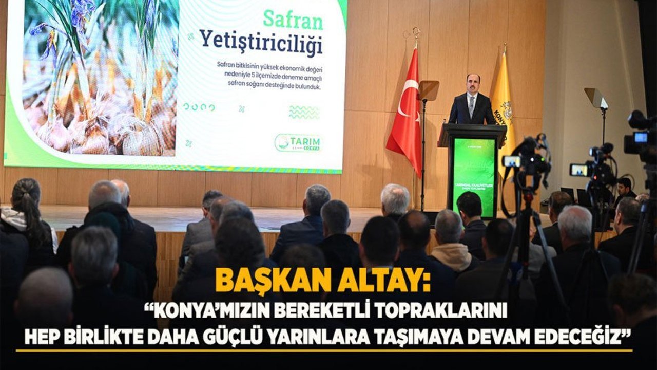 Başkan Altay, Konya’nın, sadece üretim yapan bir şehir değil; tarımı planlayan, yöneten, geliştiren ve dünyaya anlatan bir tarım başkenti olduğunu vurgulayarak, “Bugün Türkiye, tarımsal hasılada Avrupa’da birinci, dünyada ise ilk yedi ülke arasında yer alıyorsa; bu başarı, bu vizyonun bir sonucudur. Bu güçlü tarım vizyonunun en önemli merkezlerinden biri de hiç şüphesiz ki memleketimiz Konya’dır. 42 bin kilometrekare yüzölçümüne sahip şehrimizde yaklaşık 1 milyon 890 bin hektar tarım arazisi bulunmaktadır. Bu büyüklük Konya’nın tarımdaki gücünü ve potansiyelini açıkça göstermektedir. Biz şuna inanıyoruz; Tarım güçlü olursa şehir güçlü olur; şehir güçlü olursa ülkemiz güçlü olur. Nitekim tarım; gıda güvenliğidir, istihdamdır, kalkınmadır, çevredir ve gelecek nesillere bırakacağımız en değerli mirastır. Sefer bizden, zafer Allah’tandır. Daha gidecek çok yolumuz, yapacak çok işimiz var. Bol yağışlı geçen kış mevsiminin ardından, alın teriyle üretim yapan tüm çiftçilerimize bereketli bir yıl diliyorum. İnşallah Konya’mızın bereketli topraklarını hep birlikte daha güçlü yarınlara taşımaya devam edeceğiz. Hayata geçirdiğimiz tüm projelerimizin hayırlara vesile olmasını diliyorum” sözleriyle konuşmasını tamamladı.