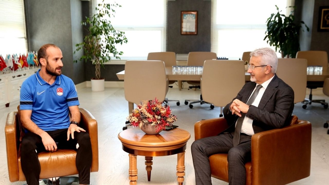 Nilüfer Belediye Başkanı Turgay Erdem, 2020 Tokyo Paralimpik Olimpiyat Oyunları’nda Türkiye’yi başarıyla temsil eden Nilüfer Belediyesi Görme Engelliler Spor Kulübü sporcusu Hakan Cira’yı kutlayarak ödülünü verdi.