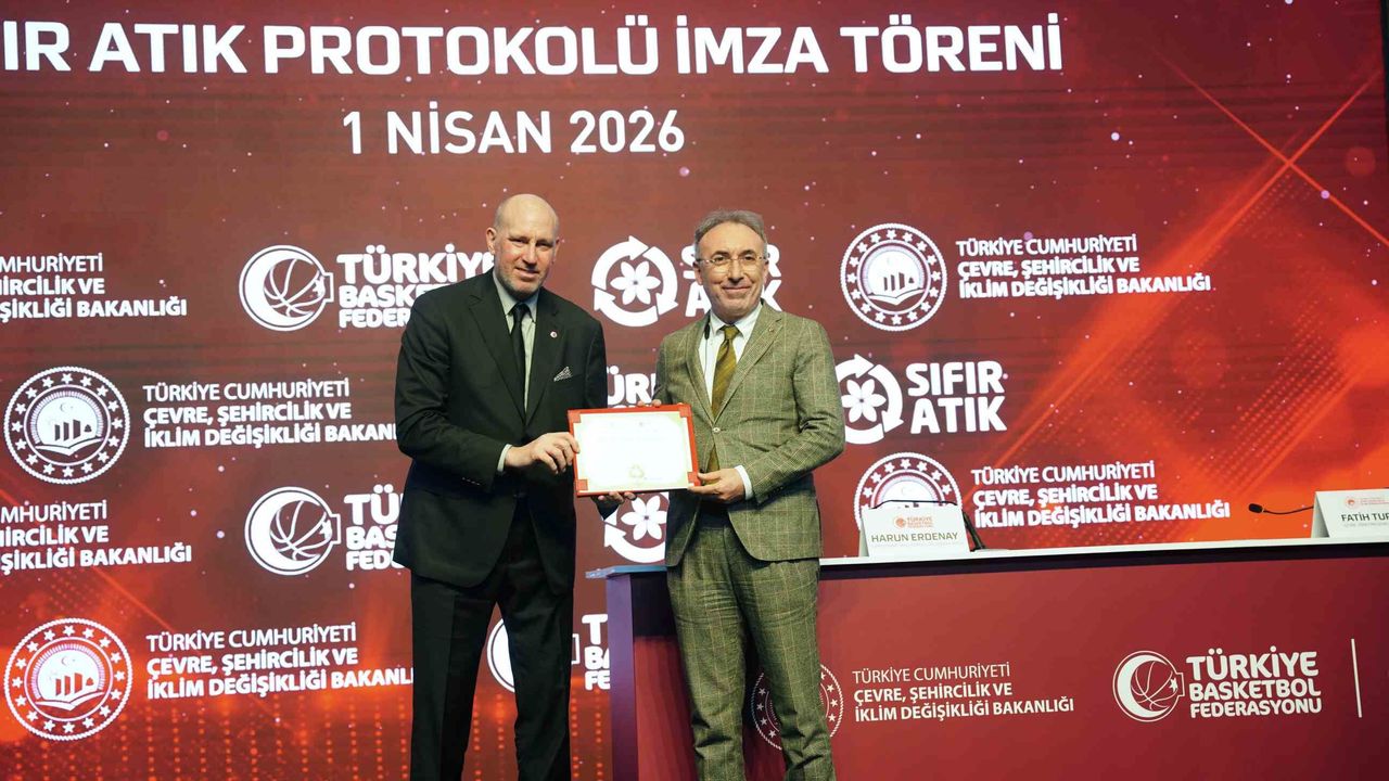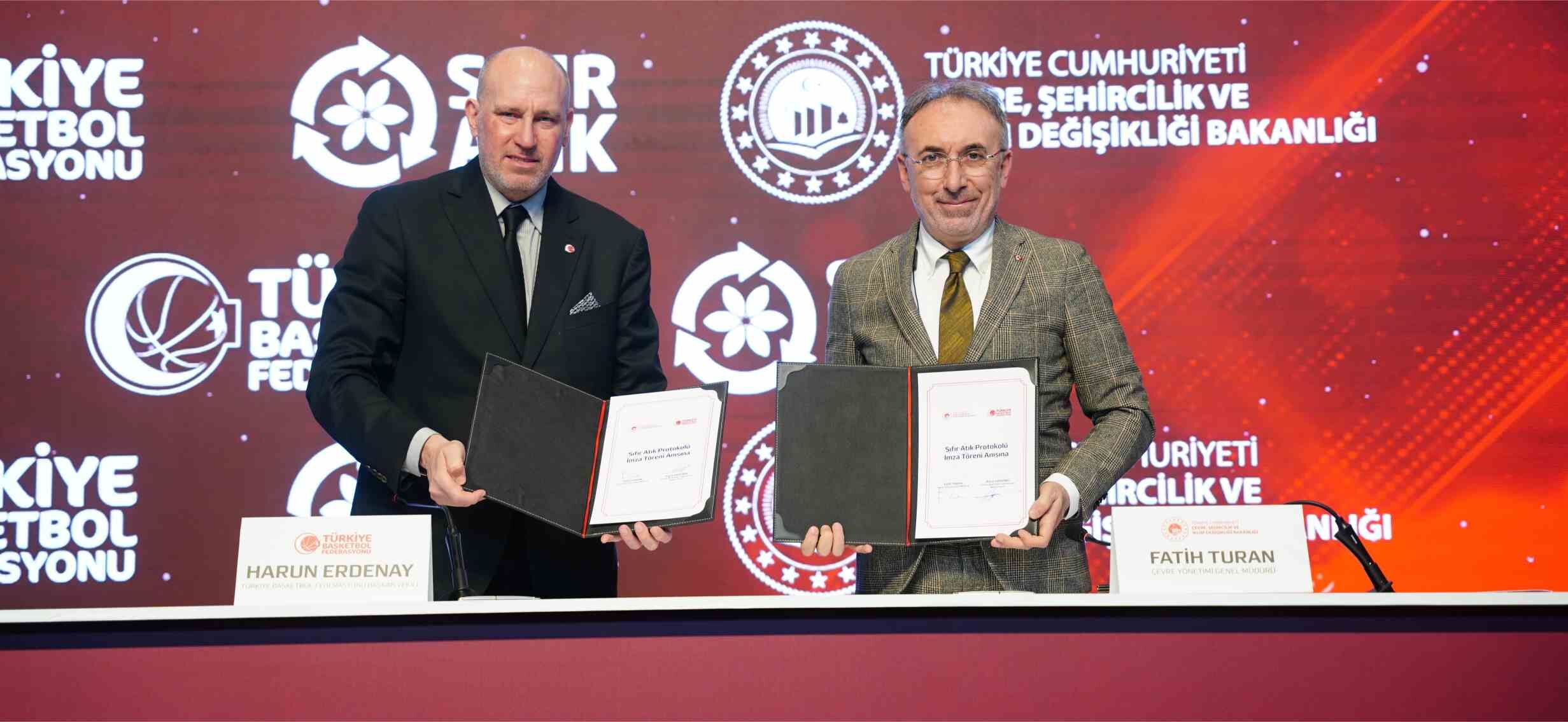 Spor alanında Sıfır Atık Yönetim Sisteminin yaygınlaştırılması amacıyla Çevre, Şehircilik ve İklim Değişikliği Bakanlığı ile Türkiye Basketbol Federasyonu arasında Sıfır Atık İş Birliği Protokolü imzalandı. Türkiye Basketbol Federasyonu Kazlıçeşme Yerleşkesi’nde düzenlenen törene, Çevre Yönetimi Genel Müdürü Fatih Turan, Türkiye Basketbol Federasyonu Başkan Vekili Harun Erdenay, Sıfır Atık Uygulamaları Dairesi Başkanı Ekrem Yıldırım, İstanbul Çevre, Şehircilik ve İklim Değişikliği İl Müdürü Ejder Batur, Türkiye Basketbol Federasyonu Yönetim Kurulu üyeleri ve sporcular katıldı. İmzalanan protokol kapsamında basketbol tesislerinde Sıfır Atık Yönetim Sistemi’nin kurulması ve yaygınlaştırılması sağlanacak. Sporcular, Süper Lig’deki müsabakalara Sıfır Atık logolu tişörtlerle çıkacak. Protokol kapsamında sosyal sorumluluk ve farkındalık odaklı çeşitli çalışmalar da yürütülecek. Bunların ilki ‘Atmıyoruz, Paylaşıyoruz’ sloganıyla düzenlenecek oyuncak paylaşımı etkinliği olacak. Basketbolseverlerin sahaya bırakacakları pelüş oyuncaklar ihtiyaç sahibi çocuklara ulaştırılacak. Ayrıca spor kulüplerine rehberlik etmek amacıyla “Sporda Sıfır Atık Kılavuzu” hazırlanacak. Kulüplerde görev alacak Sıfır Atık temsilcilerine yönelik eğitim programları düzenlenerek uygulamaların etkin ve sürdürülebilir şekilde yürütülmesi sağlanacak. Müsabakalarda, Sıfır Atık temalı görseller salonlardaki LED ekranlarda yer alacak.