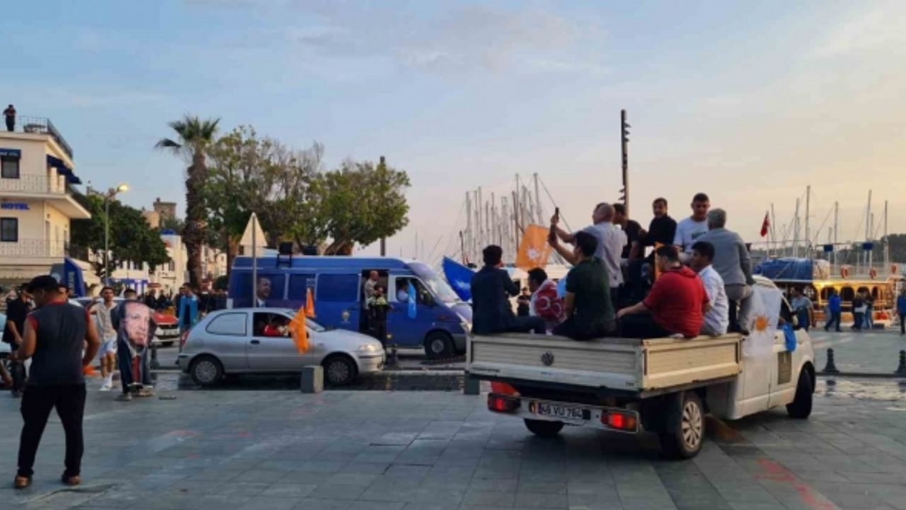 Kesin olmayan seçim sonuçlarına göre Recep Tayyip Erdoğan’ın yeniden Cumhurbaşkanı seçilmesinin ardından, Muğla’nın Bodrum ilçesinde Cumhur İttifakı seçmenleri kutlama yaptı.