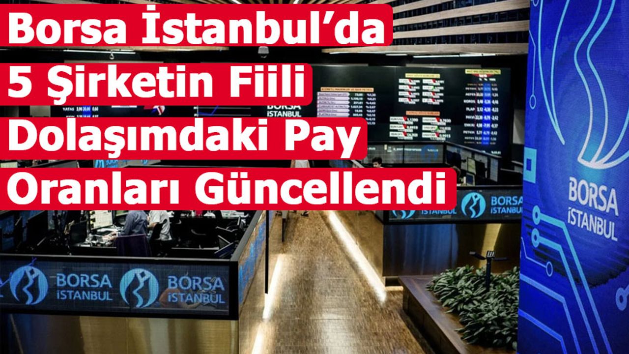 Güncellemeye göre, Astor Enerji A.Ş. (ASTOR) için oran yüzde 37, Batıçim Batı Anadolu Çimento Sanayi A.Ş. (BTCIM) için yüzde 61, Cem Zeytin A.Ş. (CEMZY) için yüzde 31, İnfo Yatırım Menkul Değerler A.Ş. (INFO) için yüzde 68, Trend Gayrimenkul Yatırım Ortaklığı A.Ş. (TDGYO) için ise yüzde 77 olarak belirlendi.