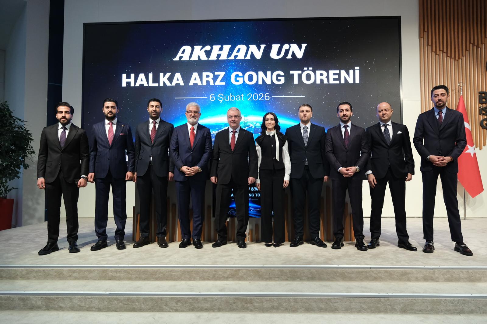 Kaliteli ve yenilikçi üretim yöntemleri ile un ve makarna sektörünün önde gelen şirketleri arasında yer alan Akhan Un Borsa İstanbul’da düzenlenen gong töreninin ardından 6 Şubat 2026 tarihi itibarıyla AKHAN koduyla borsada işlem görmeye başladı. Halk Yatırım Menkul Değerler A.Ş. liderliğinde 28-29-30 Ocak 2026 tarihlerinde, “Sabit Fiyat ile Talep Toplama” yöntemi ile gerçekleşen halka arzda toplam büyüklük 1 milyar 176 milyon 50 bin TL olurken, şirket sermayesinin yüzde 20,01’ine karşılık gelen paylar halka arz edildi.