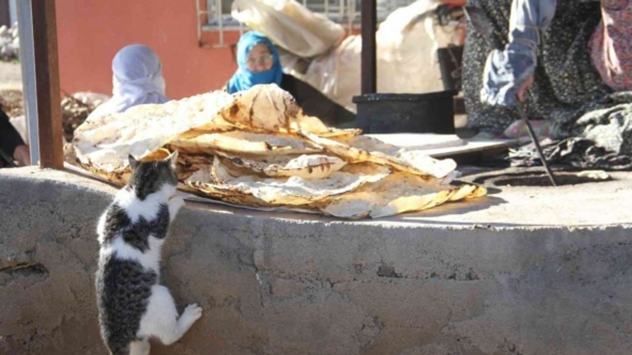 Elazığ’da kadınların imece usulü kış hazırlık telaşı başladı. Günün ilk ışıklarıyla yakılan tandırda pişirilen ekmeklere ulaşmak isteyen kedinin sevimli halleri gülümsetti.