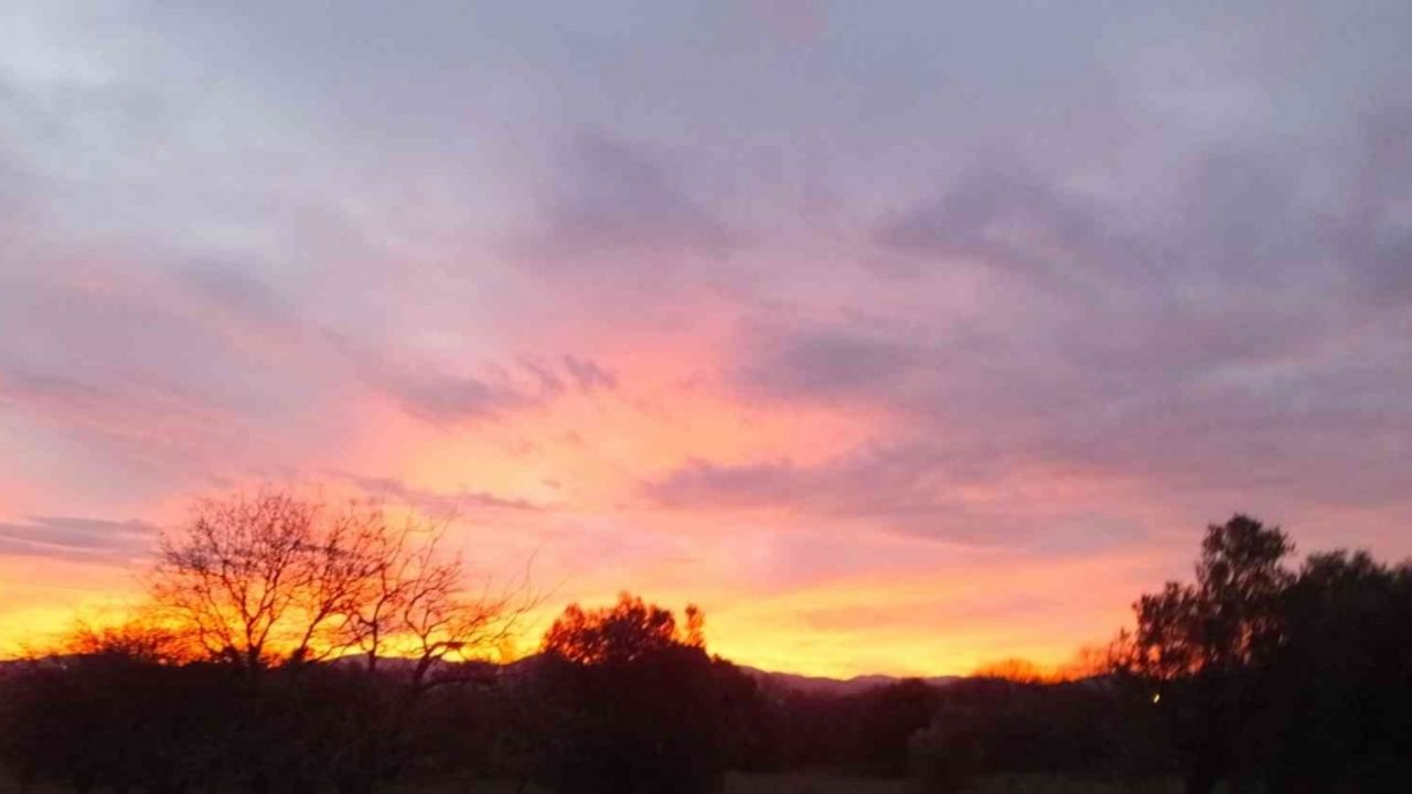 Burhaniye ilçesinde, güneşin doğuşu sırasında ilginç görüntüler oluştu. Madra dağının ardından doğan güneşin bulutların arasında oluşturduğu güzellik objektiflere yansıdı.