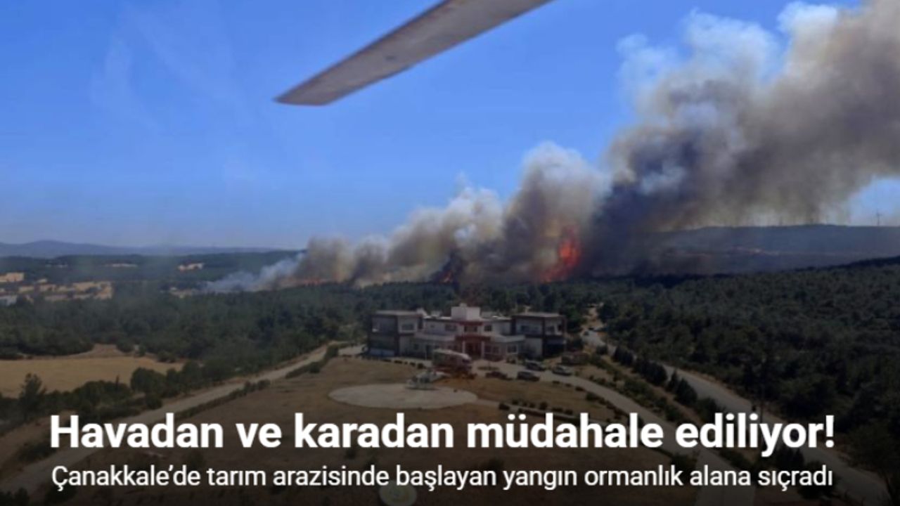 Çanakkale’nin Kepez beldesinde tarım arazisinde başlayan yangın ormanlık alana sıçradı. Yangına, Orman Bölge Müdürlüğü ekipleri havadan ve karadan müdahale ediyor.