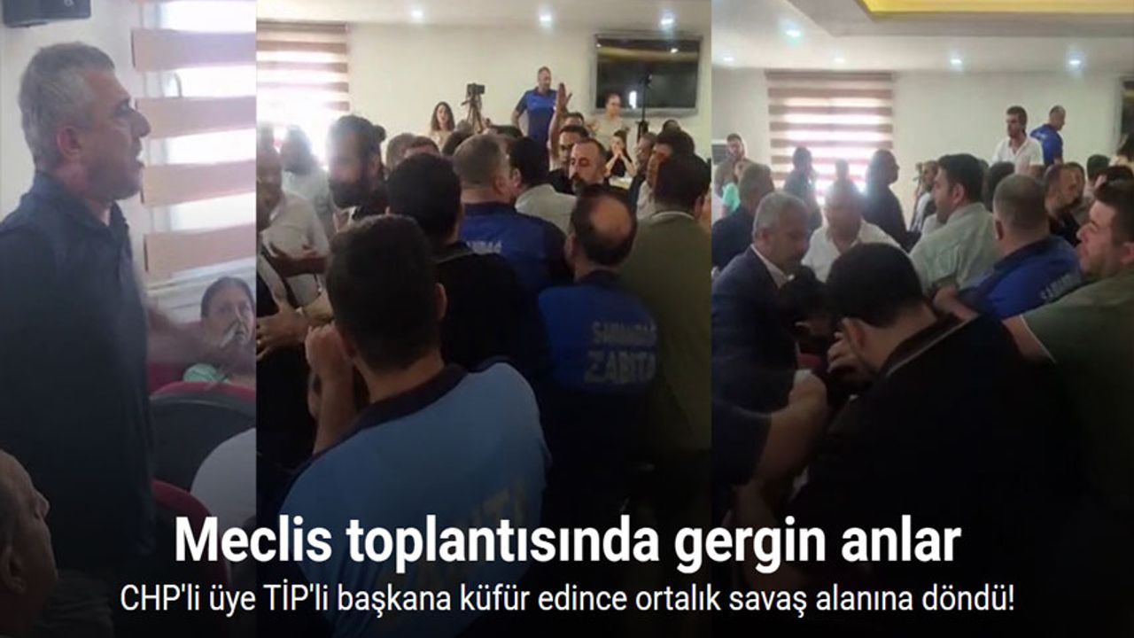 CHP’li meclis üyesinin küfrettiği anlar ve sonrasında ortalığın savaş alanına döndüğü anlar kameraya yansıdı.