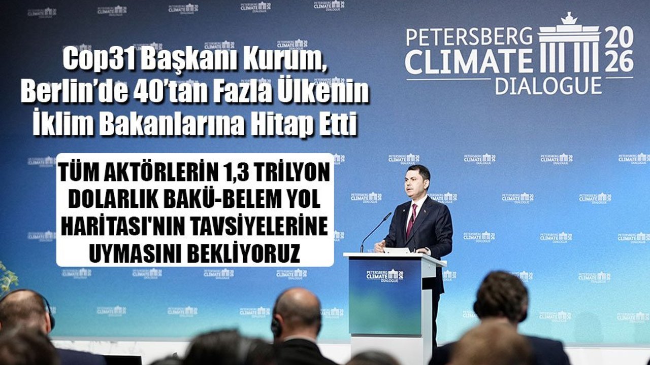 COP31 Başkanı ve Çevre, Şehircilik ve İklim Değişikliği Bakanı Murat Kurum, Almanya’nın başkenti Berlin’de düzenlenen Petersberg İklim Diyaloğu Toplantısı’nda konuştu. BM Genel Sekreteri Antonio Guterres’in video mesajla katıldığı toplantıda 40’tan fazla ülkenin iklim bakanları yer aldı. Fosil yakıt bağımlılığının, Ortadoğu’da yaşanan tedarik kriziyle tüm ülkelerin enerji arzı güvenliğini sınadığına dikkat çeken Bakan Kurum, “Milyarlarca insanı yoksulluktan kurtaran enerji sistemlerinde son 4 yıl içinde ikinci kez küresel düzeyde kriz yaşanıyor. Ancak bu kriz bize fosil yakıtların enerji arzı güvenliğini garanti etmediğini de net bir şekilde göstermiştir. Dubai’de hepimizin mutabık kaldığı üzere, ulusal koşullar doğrultusunda alternatif enerji kaynaklarına duyulan ihtiyacın ve ülkelerin enerji çeşitliliğini artırılmasının ne kadar önemli olduğunu vurguladık. Alternatif enerji kaynaklarına yatırım yapmak, özellikle enerji çeşitliliğini desteklemek; istikrar, direnç ve temiz kalkınma demektir. Hepimizin peşinden gitmesi gereken şey budur” dedi.