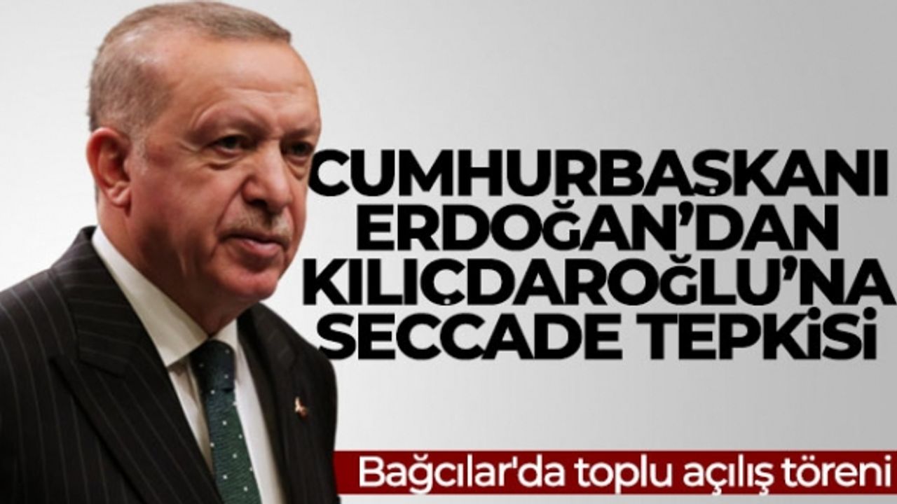 Erdoğan programın ardından Bağcılar Belediye Başkanı Abdullah Özdemir’in kendisine hediye ettiği seccadeyi meydanı dolduran kalabalığa göstererek, “Bu seccade ayaklarla basmak için değil, 15 Mayıs’ta inşallah şükür namazını bu seccadede kılabiliriz” dedi.