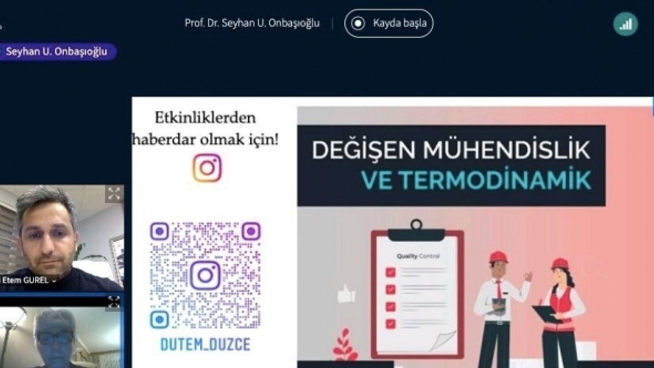 Düzce Üniversitesi Temiz Enerji Kaynakları Uygulama ve Araştırma Merkezi (DÜTEM) tarafından düzenlenen "Değişen Mühendislik ve Termodinamik" başlıklı söyleşide, Prof. Dr. Seyhan Uygur Onbaşıoğlu bilgi ve deneyimlerini anlattı.
