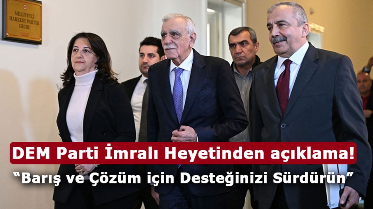 Cezaevlerinde başkanlarımız ve arkadaşlarımızla yürüttüğümüz tartışmalarımız son derece olumlu sürmüştür. Sn. Öcalan’ın ve DEM Parti’nin bu süreçte üstleneceği role dair açık desteklerini belirtmişler, siyasal ve toplumsal zeminin güçlendirilmesi yönünde üzerlerine düşen pozitif katkı sorumluluğunun gereklerini yerine getireceklerini ifade etmişlerdir.