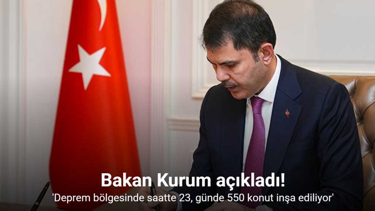 Deprem bölgesinin ayağa kalkması için ilk günden bugüne kadar 75 milyar doları aşan bir yatırım yapıldığını ifade eden Bakan Kurum, "Aslında depremin olduğu ilk andan itibaren bir seferberlik ilan ettik. Arama kurtarma çalışmaları devam ederken, depremden kurtulan vatandaşlarımızın ihtiyaçları için aşevlerini, geçici barınma alanlarını kurduk. Bir yandan da kalıcı konutlar için çalışmalarımıza başladık. Depremin 15 gün sonrasında ilk konutlarımızın yapımını başlattık, 45. günde ilk temellerimizi attık. Bu çerçevede hükümet olarak deprem bölgesinin yeniden ayağa kalkması için bugüne kadar 75 milyar doları aşan bir yatırım yaptık. Ekonomiden sanayiye, tarımdan ticarete, altyapıdan sosyal projelere kadar her alanda bölgeyi yeniden canlandırmak için çalışmalar yaptık, yapmaya da devam ediyoruz. 11 ilimizde, 174 ayrı alanda, 3 bin 481 şantiyede 200 bin mimar, mühendis ve işçi kardeşimiz arı gibi çalışıyor. Bugün Türkiye, deprem bölgesinde saatte 23, günde 550 konut inşa eden bir ülkedir. Elde ettiğimiz bu hızla asrın inşa seferberliğinde sona yaklaşmış, son düzlüğe girmiş durumdayız" dedi.