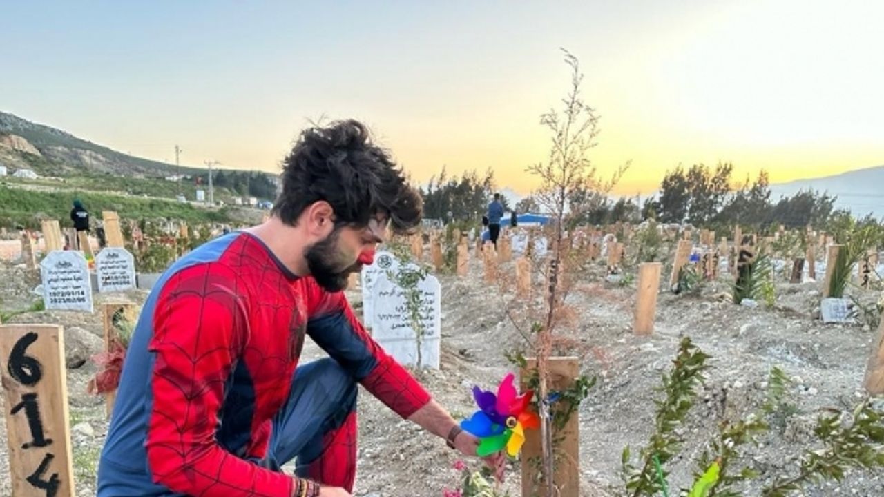 Adana’da faaliyet gösteren bir derneğin üyeleri, Hatay’da depremde hayatını kaybeden çocukların mezarına süper kahraman kostümleri giyerek rüzgar gülü bıraktı.