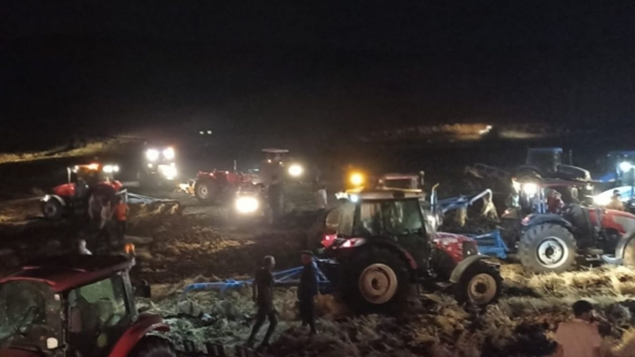 6 Şubat depreminde ağır hasar alan Adıyaman’da, 136 dönümlük arpa tarlasında çıkan yangını duyanlar alevlere müdahale etmek için koştu. Yaklaşık 100’e yakın traktörün alevlerin önünü kesmek için geldiği olay yerinde yangını duyan istirahatteki polislerde söndürme çalışmalarına ayaklarındaki terliklerle yetişti.