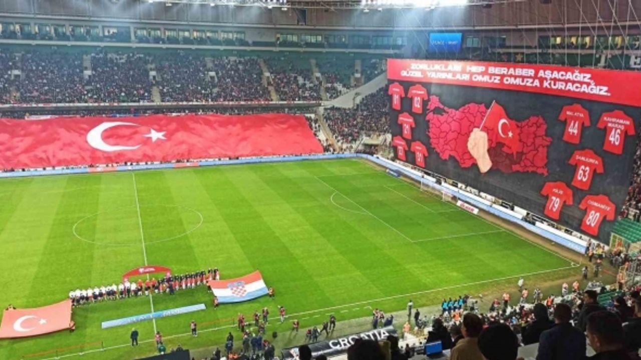 Türkiye ile Hırvatistan maçı öncesinde stadyumda Kahramanmaraş merkezli meydana gelen deprem felaketinden etkilenen vatandaşlar unutulmadı.
