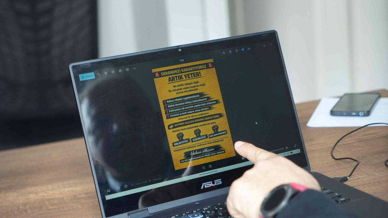 Eylem kapsamında emlakçılar yeni ilan girişi yapmazken, mevcut ilanlarda da dikkat çekici protesto görselleri kullanılıyor.