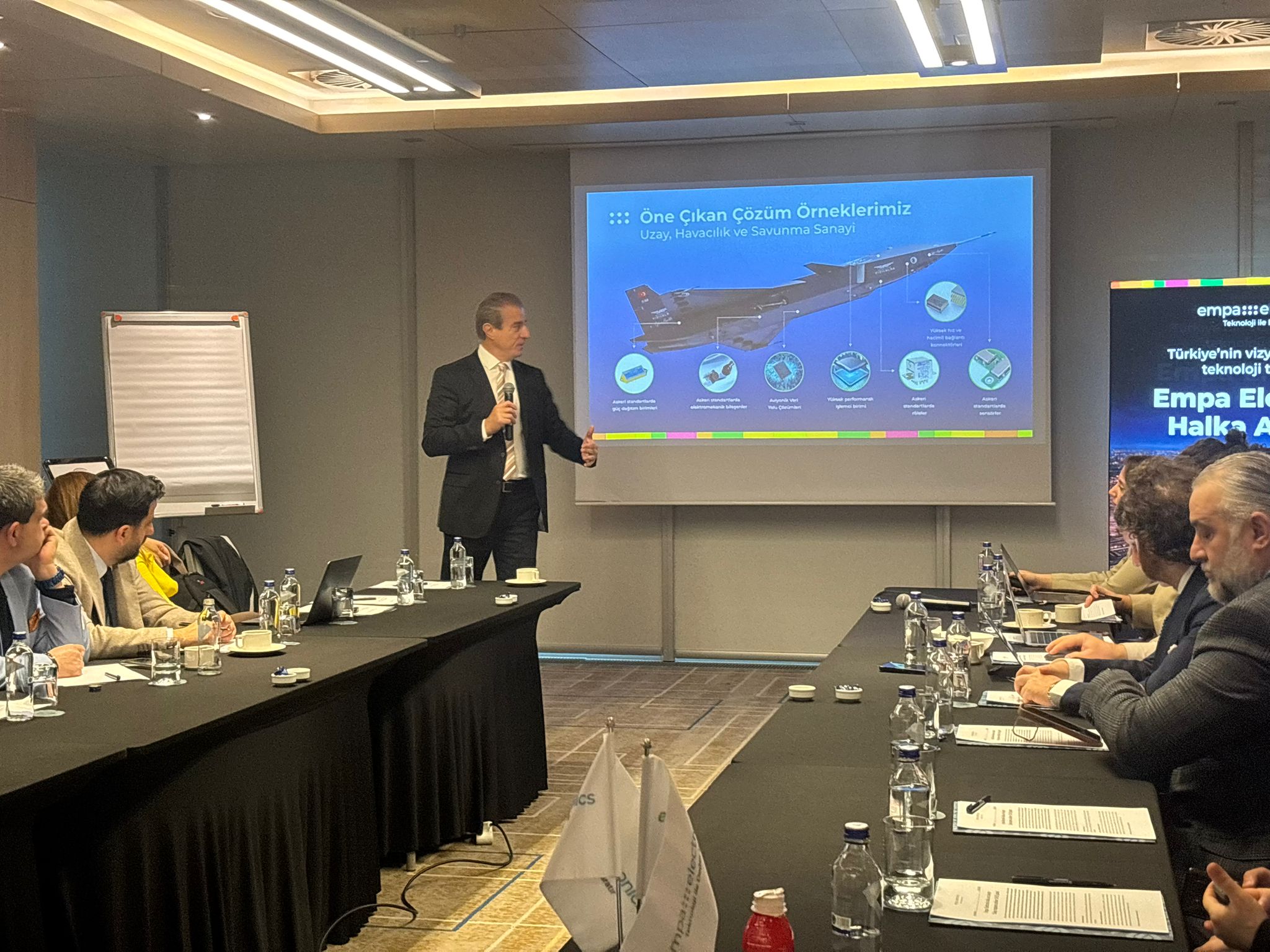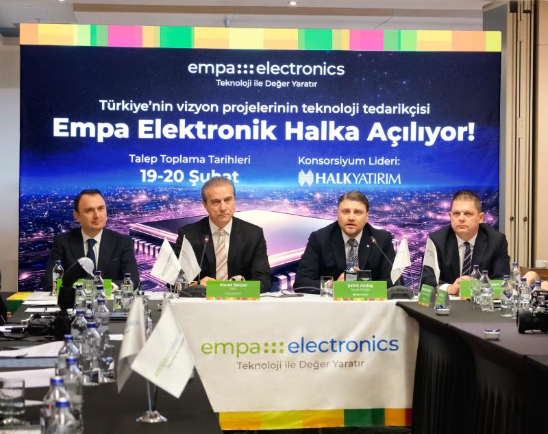 37 yıllık deneyimiyle elektronik bileşen sektörünün güvenilir ve öncü firması Empa Elektronik Sanayi ve Ticaret Anonim Şirketi (Empa Elektronik), halka arz oluyor. Empa Elektronik, halka arz detaylarını ve gelecek dönem planlarını düzenlediği bir basın toplantısıyla paylaştı. Empa Elektronik CEO’su Murat Sarpel’in ev sahipliğinde gerçekleşen toplantıya Empa Elektronik COO’su Volkan Akbıyık, Empa Elektronin Mali ve İdari İşler Direktörü Özer Filiz, Ar-Ge Direktörü Alper Çoban, Empa Elektronik Pazarlama ve Kurumsal İletişim Müdürü Dinç Aşık, Halk Yatırım Genel Müdürü Şafak Akdaş, Halk Yatırım Genel Müdür Yardımcısı Güner Gezen ve Halk Yatırım Genel Müdür Yardımcısı Kenan Cemal Gürbüz katıldı.