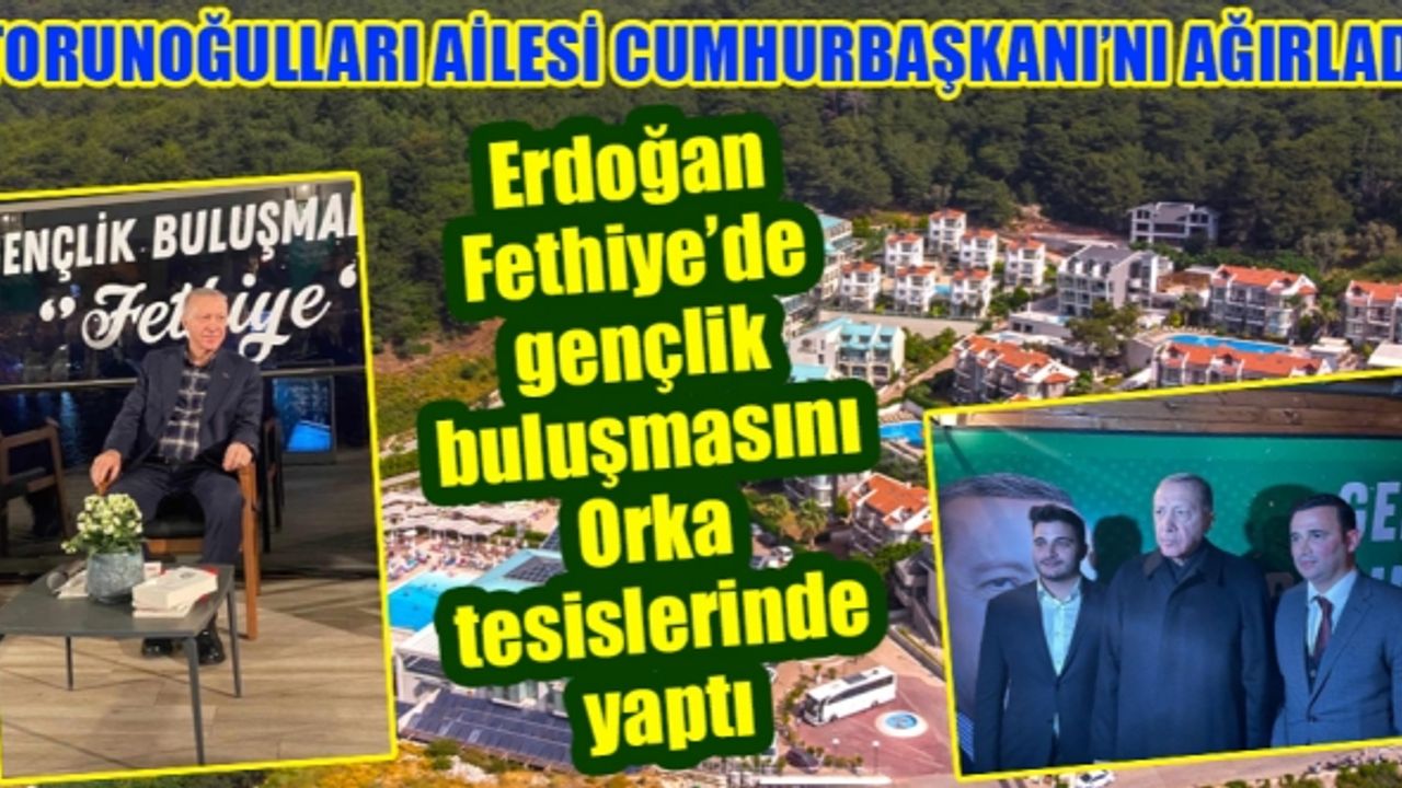 Cumhurbaşkanı Recep Tayyip Erdoğan, yatırımların açılışını gerçekleştirmekk üzere geçtiğimiz hafta sonu kalabalık bir heyetle Muğla’daydı.. Menteşe’de düzenlenen törenle yatırımların açılışını yapan Cumhurbaşkanı Recep Tayyip Erdoğan, daha sonra Fethiye’de, gençlerle buluştu. Fethiye ‘Gençlik Buluşması etkinliği kapsamında Cumhurbaşkanı Recep Tayyip Erdoğan ve beraberindeki heyet Orkan Grubu'nun Fethiye’de yeni açtığı restoranı ziyaret etti. Orka Otelleri Yönetim Kurulu üyesi Caner Torunoğulları ile Ercan Torunoğulları, Cumhurbaşkanı Erdoğan ve bakanları karşıladı. Erdoğan, yakın zamanda dedeleri Faik Torunoğulları’nı kaybeden Caner ile Ercan Torunoğulları’na taziye dileklerini iletti.
