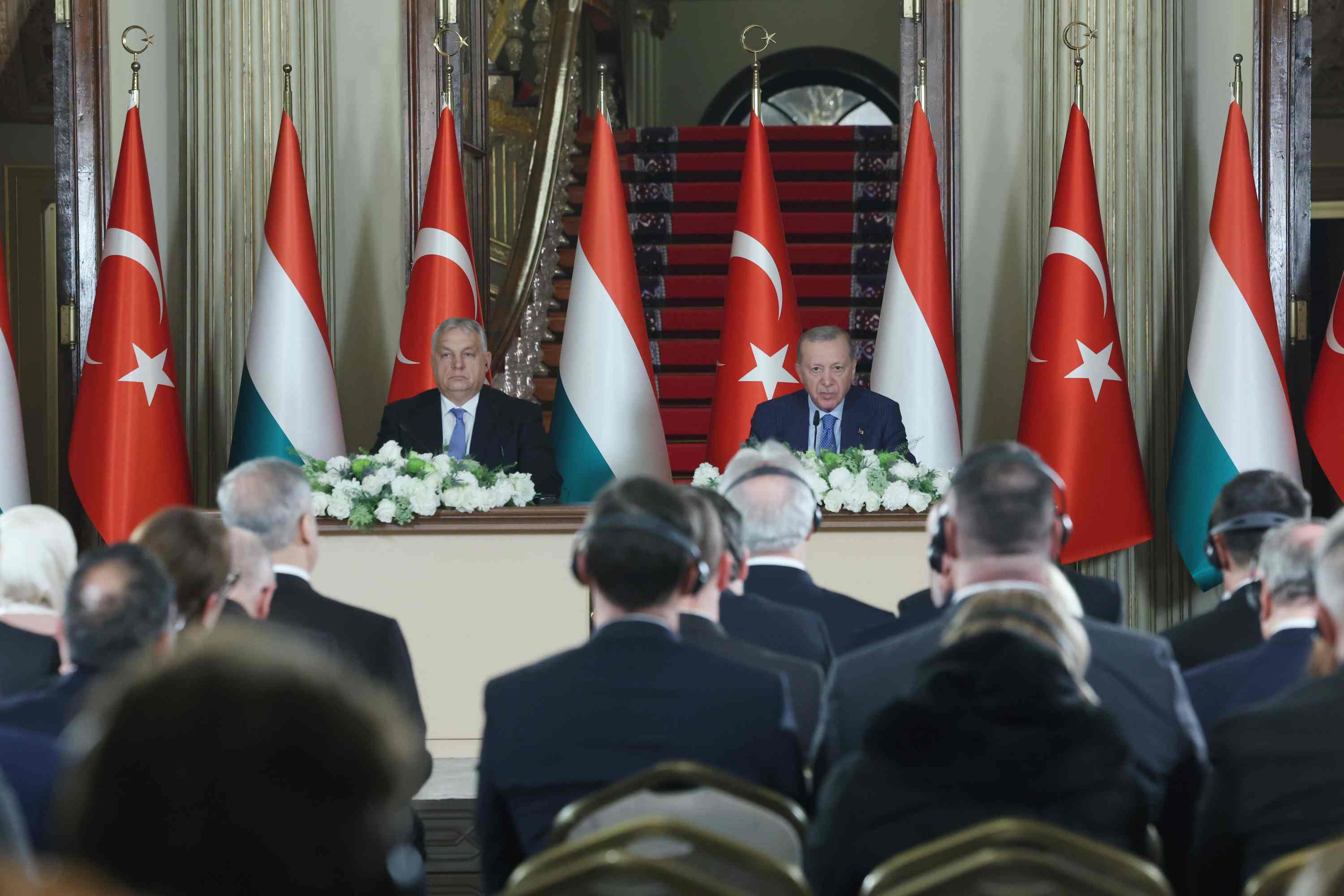 İmza töreni sonrası düzenlenen ortak basın toplantısında konuşan Cumhurbaşkanı Erdoğan, "İki yıl önce Budapeşte'de düzenlediğimiz toplantımızda ilişkilerimizi geliştirilmiş ortaklık düzeyine çıkarmıştık. Son yıllarda Sayın Orban ile gerek ikili ziyaretler, gerek Türk Dünyası Teşkilatı ve diğer uluslararası platformlarda birçok görüşmemiz oldu. Geçtiğimiz nisan ayında 4. Antalya Diplomasi Forumu'nda ve akabinde Macaristan’ın ev sahipliğinde Budapeşte’de düzenlenen Türk Devletleri Teşkilatı gayriresmi zirvesi marjındaki toplantıda Sayın Orban ile bir araya gelmiştim. Dostluk anlaşmasının 100. yılı münasebetiyle ilan ettiğimiz Kültür Yılı kapanış etkinliğini de geçen yıl aralık ayında sayın cumhurbaşkanı ve Sayın Orban ile birlikte yapmıştık. Bugünkü görüşmemizde ikili ilişkilerimizi gözden geçirmekle kalmayıp enerji, ulaştırma, ticaret, savunma ve kültür gibi alanlarda işbirliğimizi daha da geliştirme irademizi teyit ettik. Havacılıktan güvenliğe, teknolojiden kültür ve eğitime münasebetlerimizin ahdi zeminini güçlendirecek muhtelif belgelerin imzasını gerçekleştirdik. Dışişleri ve savunma bakanlarımız ile istihbarat ve savunma sanayii başkanlarımız evvelce tesisinde mutabık kaldığımız ortak istişare mekanizmasının ilk toplantısını yaptılar. Bugün ayrıca ikili ve küresel meselelerin çok daha kurumsal bir şekilde ele alınmasına imkan verecek ortak bir planlama ile dışişleri bakanlarımızın başkanlığında kurulmasını kararlaştırdık. Her iki mekanizmayı, ilişkilerimizin ulaştığı seviyeyi göstermesi bakımından anlamlı buluyor, bu istişare formatlarının işbirliğimizin güçlendirilmesine ilave katkılarda bulunacağına inanıyorum" dedi.