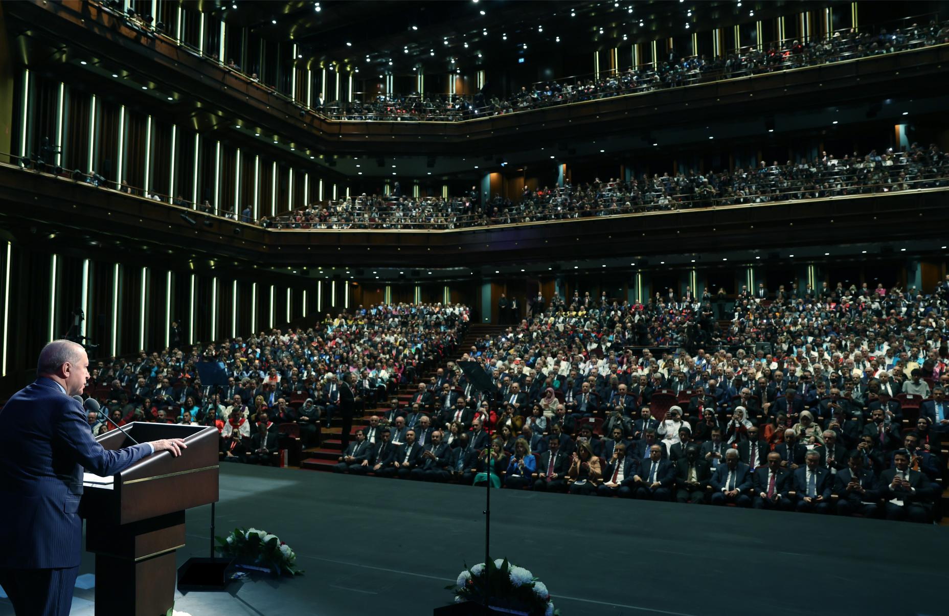 Türkiye’nin 350 bini aşkın yabancı öğrenciyle dünyada 6. sırada olduğunu belirten Erdoğan, bu sayıyı orta vadede 500 bine, uzun vadede ise 1 milyona çıkarmayı hedeflediklerini söyledi: “Uluslararası öğrenciler kimsenin hakkını gasp etmiyor. Tam tersine Türk ekonomisine yıllık 3 milyar dolar katkı sağlıyorlar.”