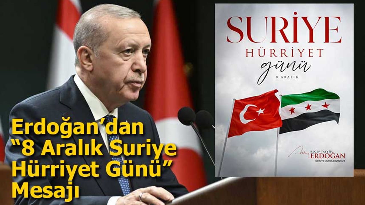 Erdoğan, “8 Aralık Suriye Hürriyet Günü” vesilesiyle Suriye halkına selamlarını ileterek, son bir yılda karşılaştıkları tüm engellere rağmen gösterdikleri iradeyi takdirle karşıladığını belirtti: