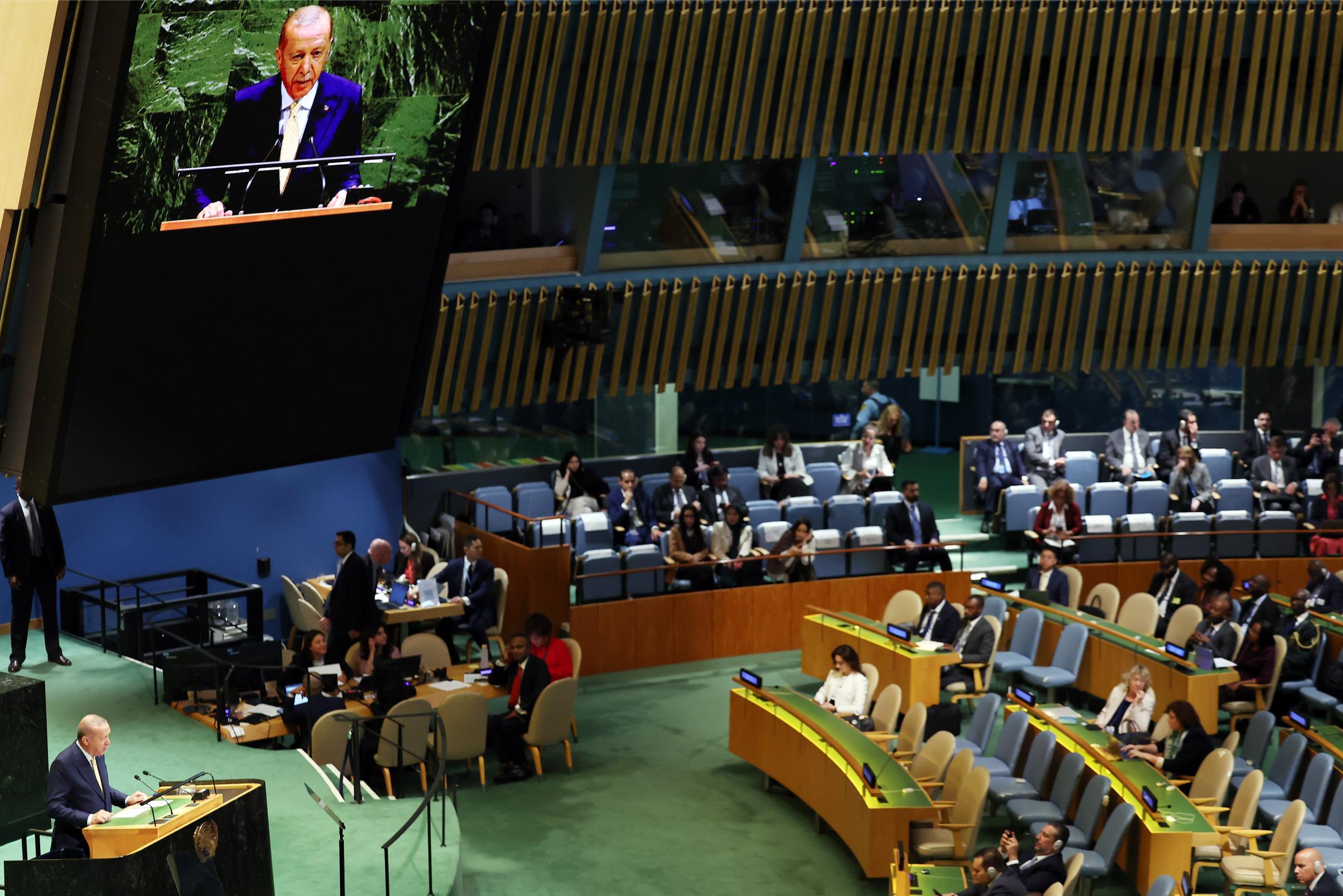 Türkiye’nin, 1967 sınırları temelinde başkenti Doğu Kudüs olan bağımsız Filistin Devleti kurulana kadar mücadelesini sürdüreceğini kaydeden Erdoğan, Filistin’in BM’de tam üyelik kazanması gerektiğinin altını çizdi.