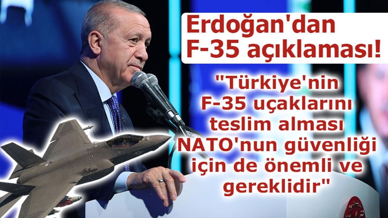 Türkiye'nin F-35 almasının NATO açısından da önemli olduğuna vurgu yapan Erdoğan "Sayın Trump'ın yeniden göreve başlamasıyla birlikte Türkiye-ABD ilişkilerinde daha makul ve olumlu bir zemine geçilmesi yönünde bir imkan doğmuştur. Türkiye'nin bedelini ödediği F-35 uçaklarını teslim alması ve programa yeniden dahil edilmesi iki stratejik ortak olan Türkiye ve ABD'nin yanı sıra NATO'nun güvenliği için de önemli ve gereklidir" ifadelerini kullandı.