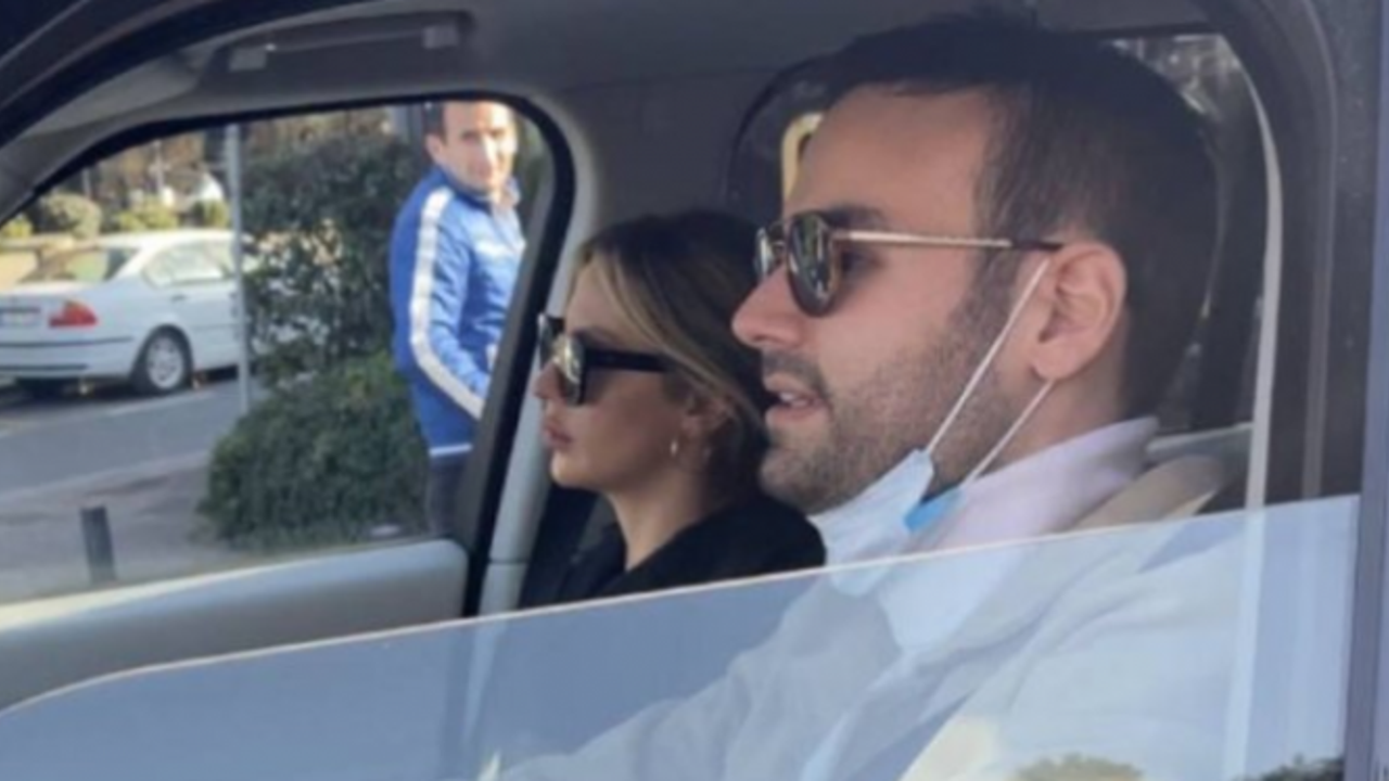 Araçlarının içinde sıkışan trafiğin açılmasını bekleyen ikili, basın mensuplarının 'evlilik' sorularını yanıtsız bıraktı.