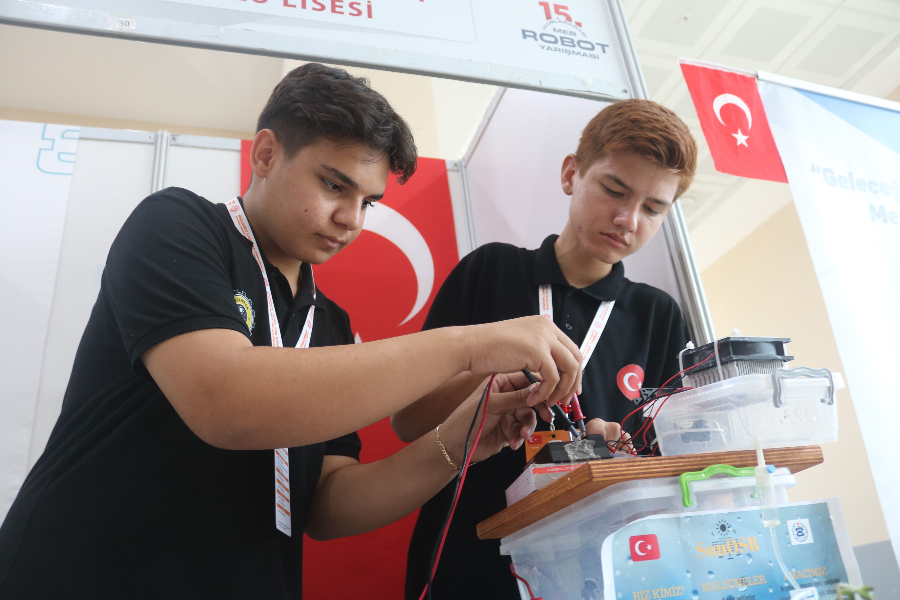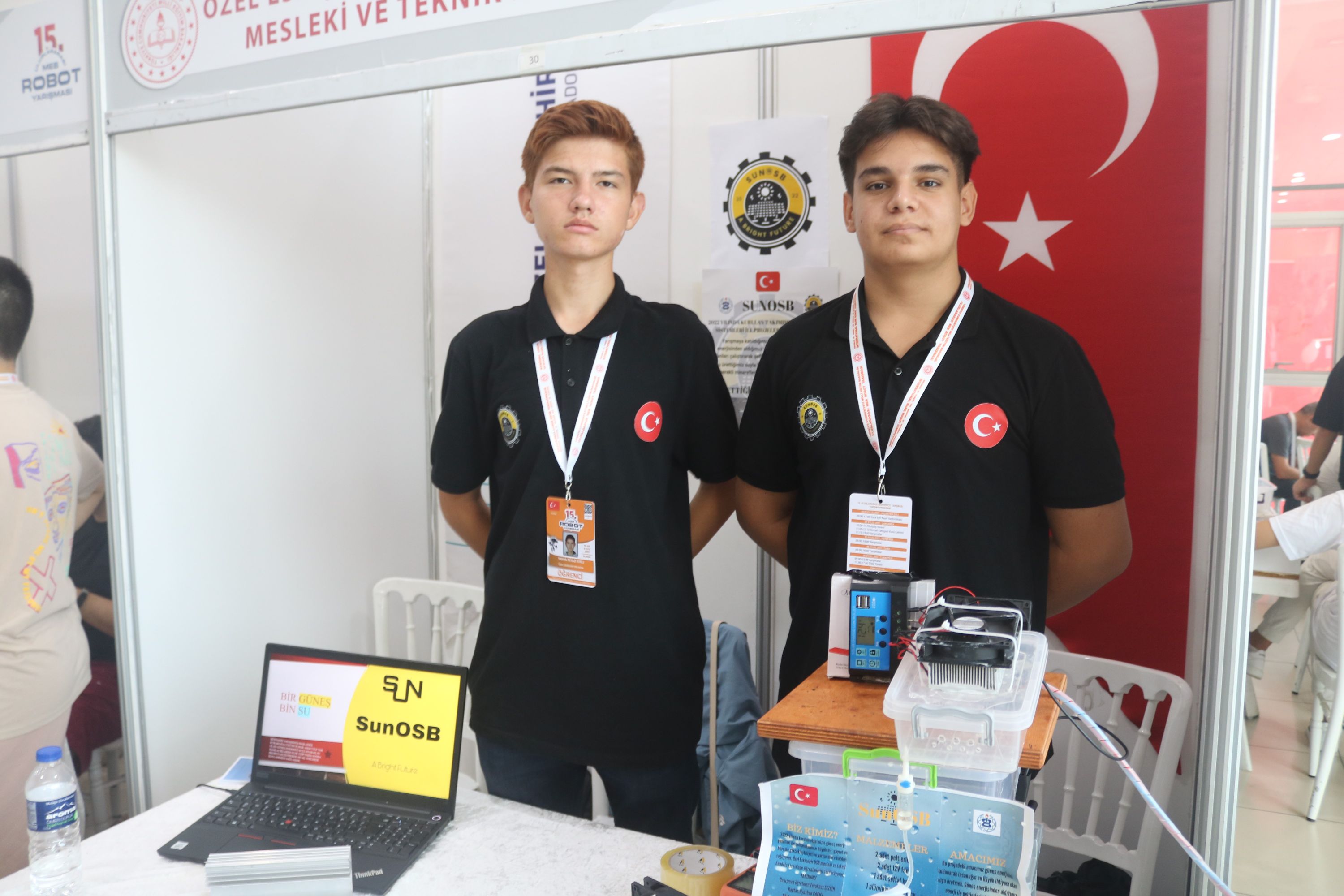 Bursa’da gerçekleştirilen 15. Uluslararası Robot Yarışması’nda Türkiye’nin birçok lise öğrencilerinin projeleri yer aldı. Özel lise öğrencileri İlyashan Çakıcı, Yahya Niyazi Kirli ve 4 arkadaşı ile birlikte geliştirdikleri sistemle güneşten elde ettikleri enerjiyle saf su elde etti. 6 öğrencinin geliştirdiği projede güneş panelinden alınan enerjiyle dışarıdan alınan hava ile içerideki soğuk hava birleştirilerek su üretiliyor. Üretilen su tarımda sulama suyu olarak kullanılabiliyor. Bunun yanı sıra gerekli mineraller katılınca su içilebiliyor. Sergi alanında tanıtım amaçlı kurulan düzeneğin açık havada saatte 5ml kapalı alanda ise 3 saatte 5 ml su üretebildiklerini söyleyen gençler, yeterli destek bulabildiklerinde tarım sektörü için seralara özel proje geliştireceklerini, çiftçilerin bu sayede ücretsiz enerji ve sulama suyuna ulaşabileceklerini aktardı.