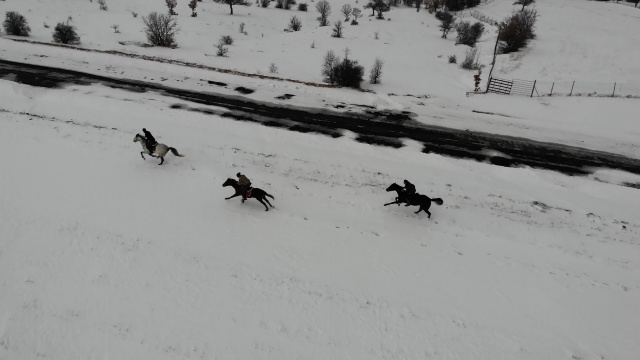İHA muhabirine konuşan Atlı Safari ve Doğa Parkı’nda görevli Muhammet Talha Kireç, “Sabahın erken saatlerinde geliriz. Atlarımızı maneje alırız. Maneje aldıktan sonra atlar geceden biraz stresleniyor biraz. Bu zamanda da kar bekliyorduk. Hava şartları uygun. Atlar için soğukta iyi bir şey. Bileklerine çok iyi geliyor” dedi.