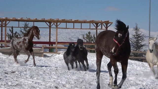 Kırıkkale’de 1744 rakımlı Dinek Dağındaki Atlı Safari ve Doğa Parkında atların kar banyosu ve yapılan atlı safari renkli görüntüler oluşturdu.